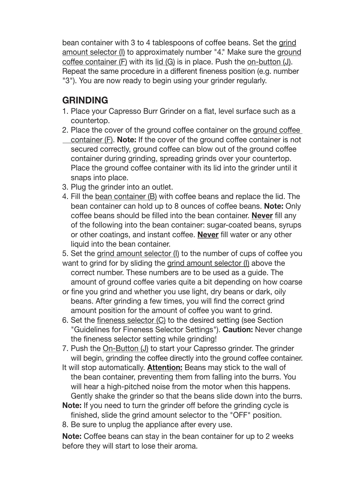 bean container can hold up to 8 ounces of coffee beans. Note: Only