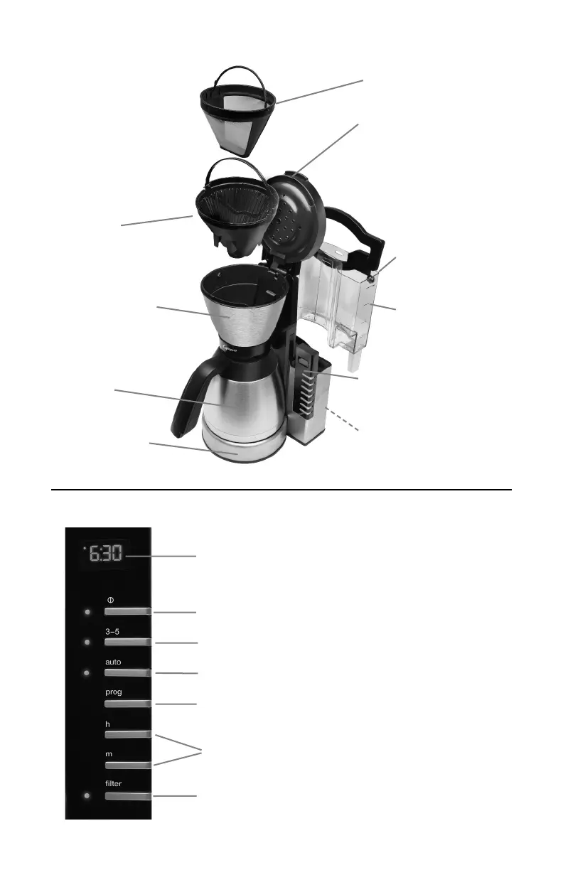 Hour (h) and Minute (m) buttons set time and auto-on time