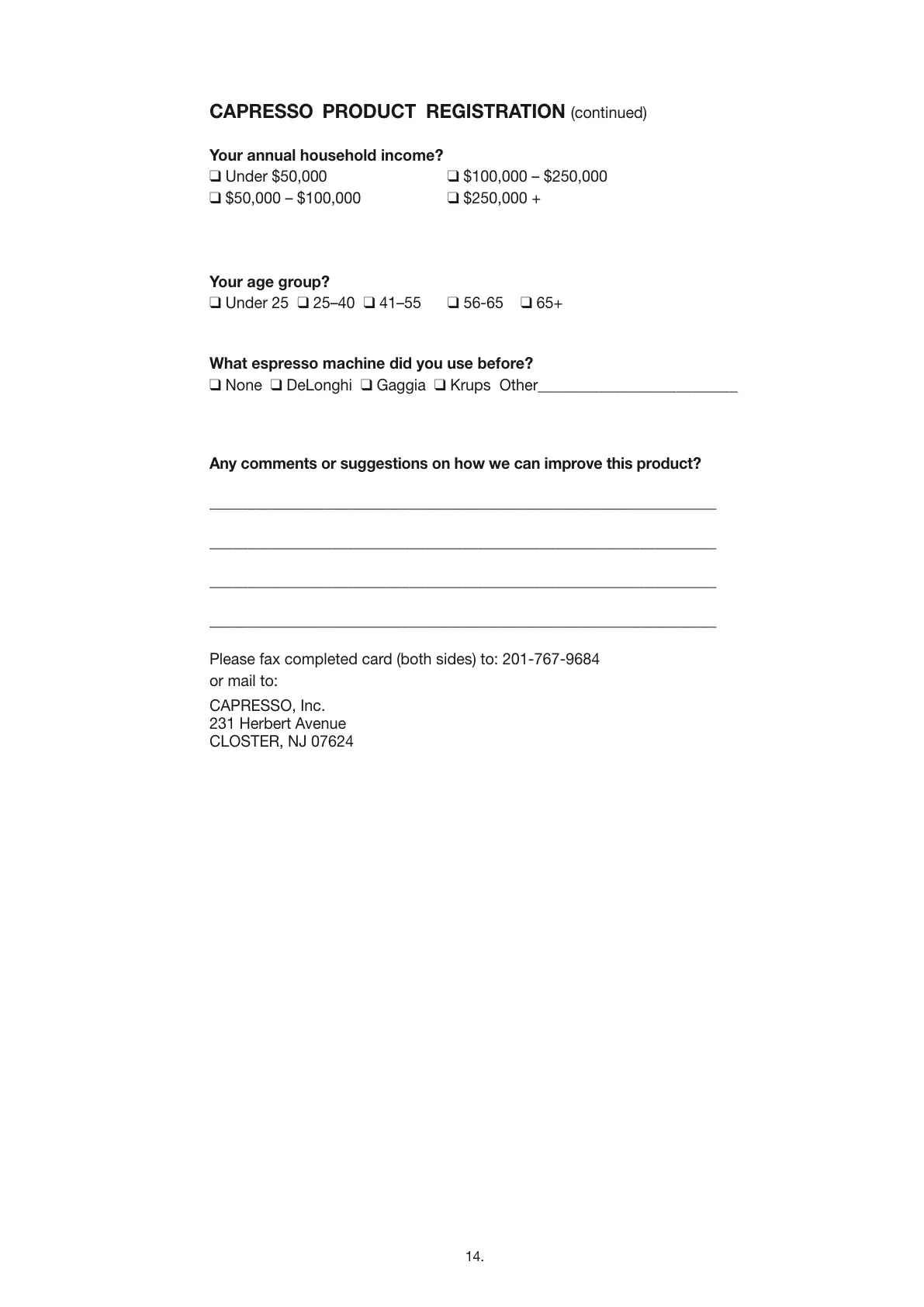 CAPRESSO PRODUCT REGISTRATION (continued)