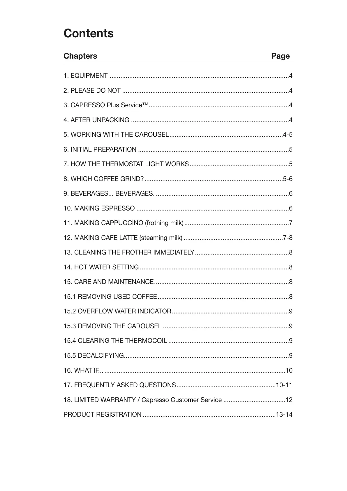 18. LIMITED WARRANTY / Capresso Customer Service ...................................12