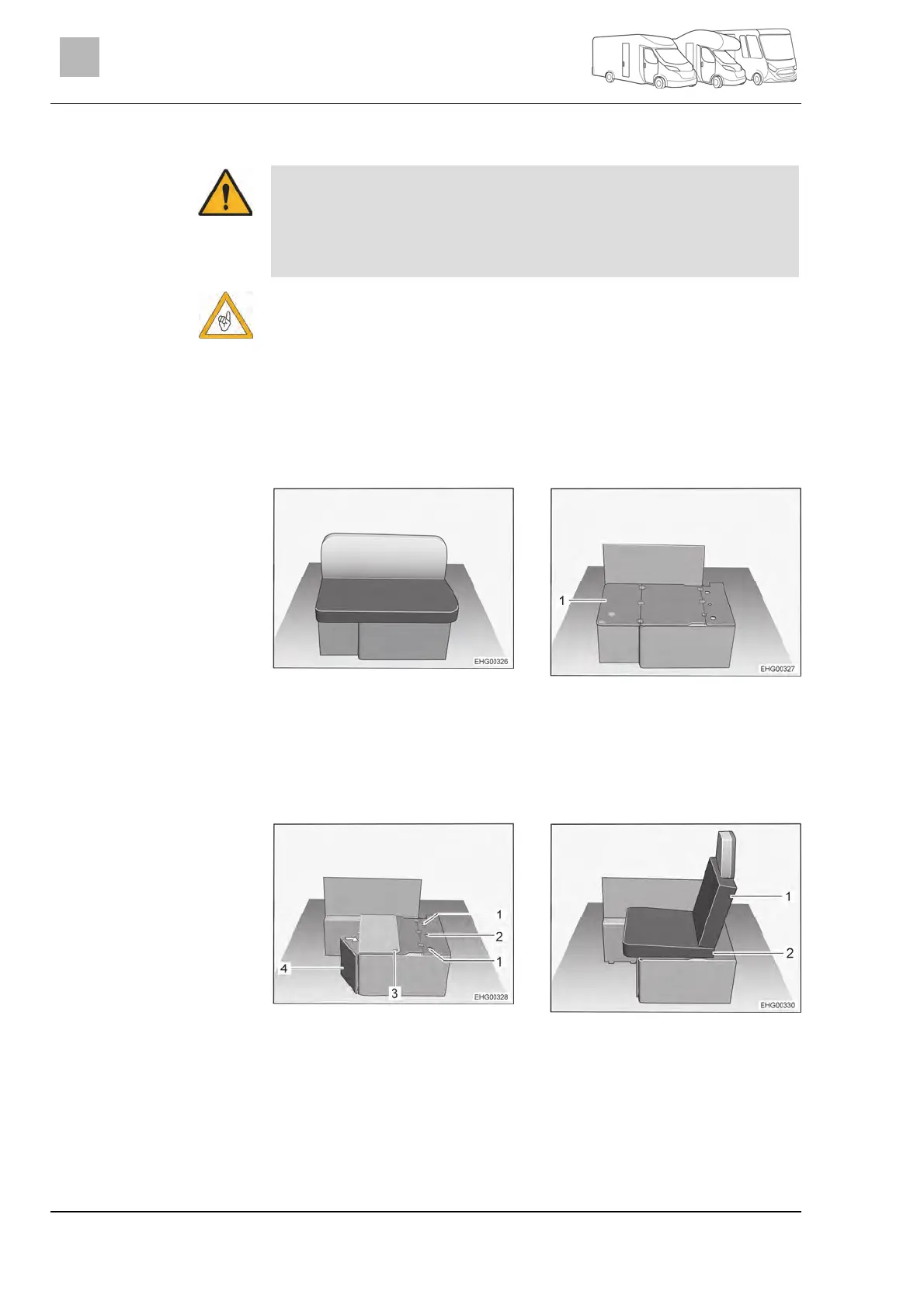 Swing the bench seat panel (Fig. 23,4) towards the side wall.