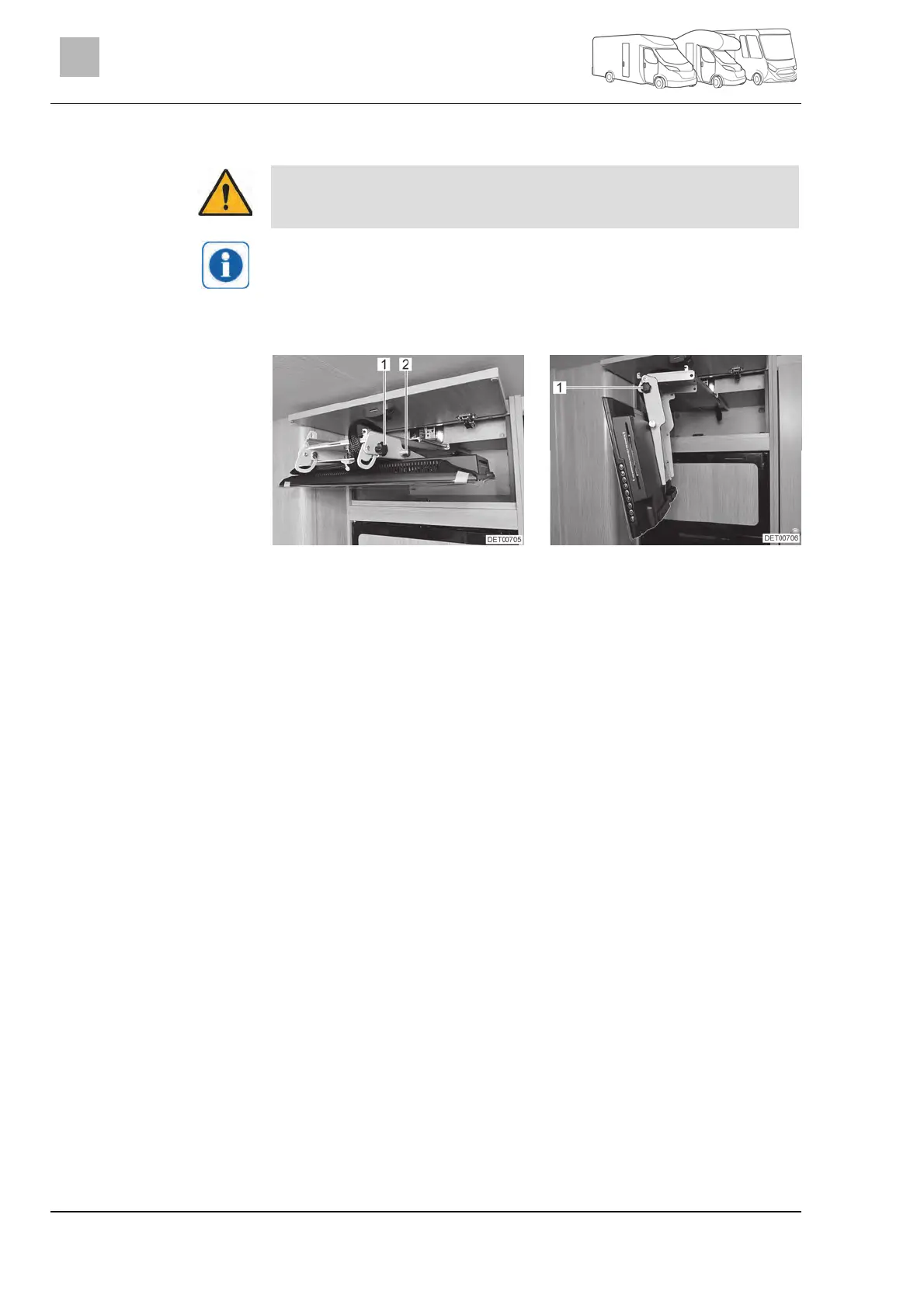 move the flat screen, open the adjustment knobs (Fig. 65,1) slightly on