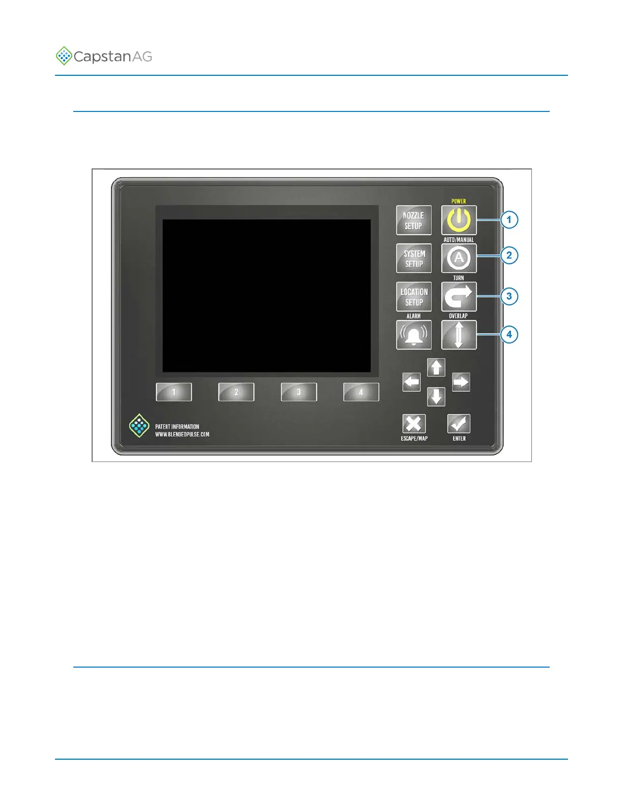 2. Press the POWER button (1) to start the CapView and the rate controller.