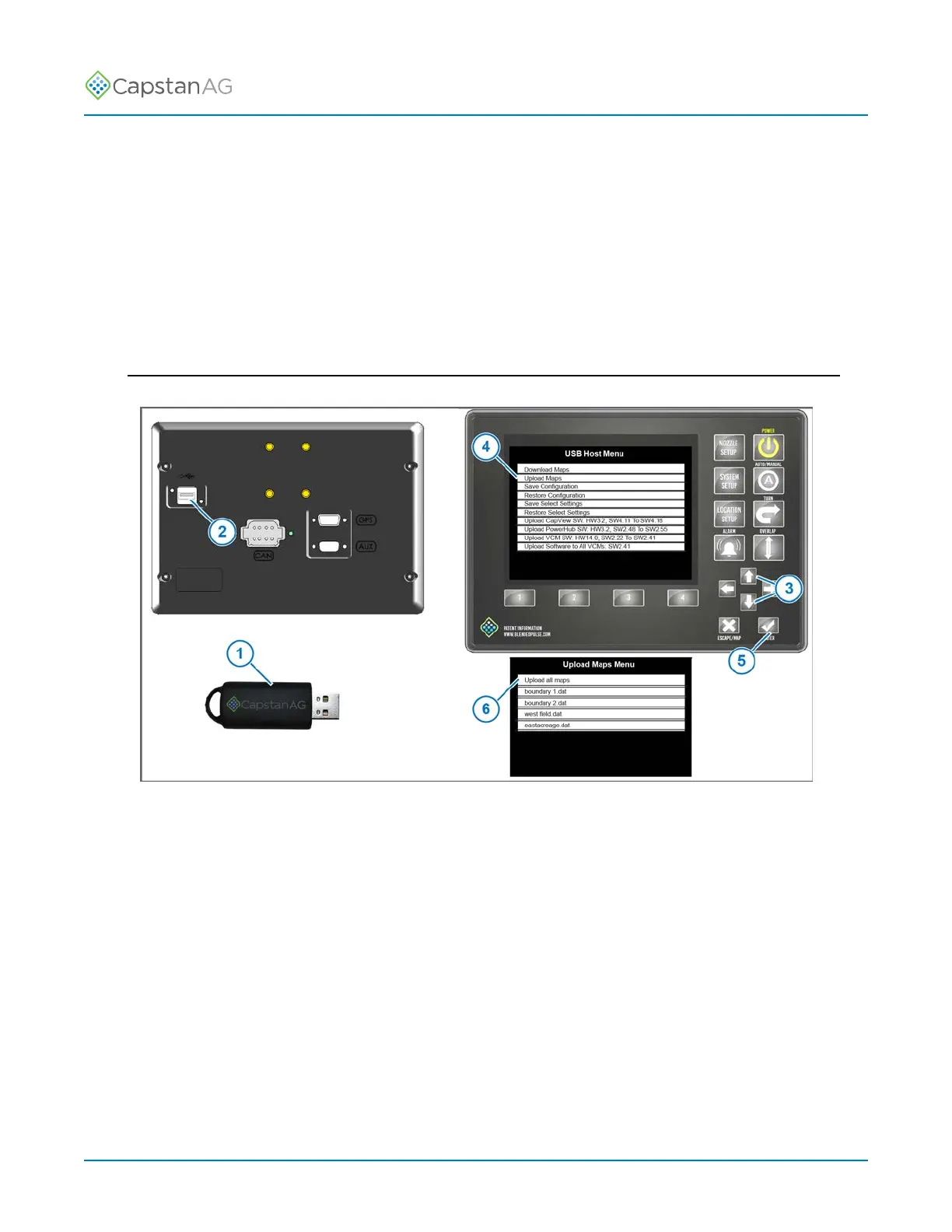 2. Use the up or down arrow button (3) to select Upload Maps (4).