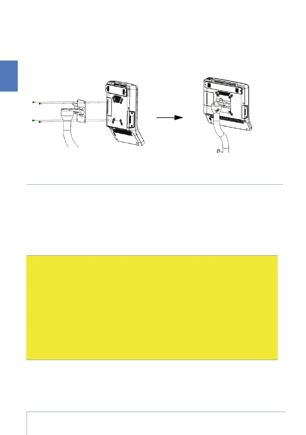 2. To fix the device to the mounting bracket, use the four screws and washers that are delivered
