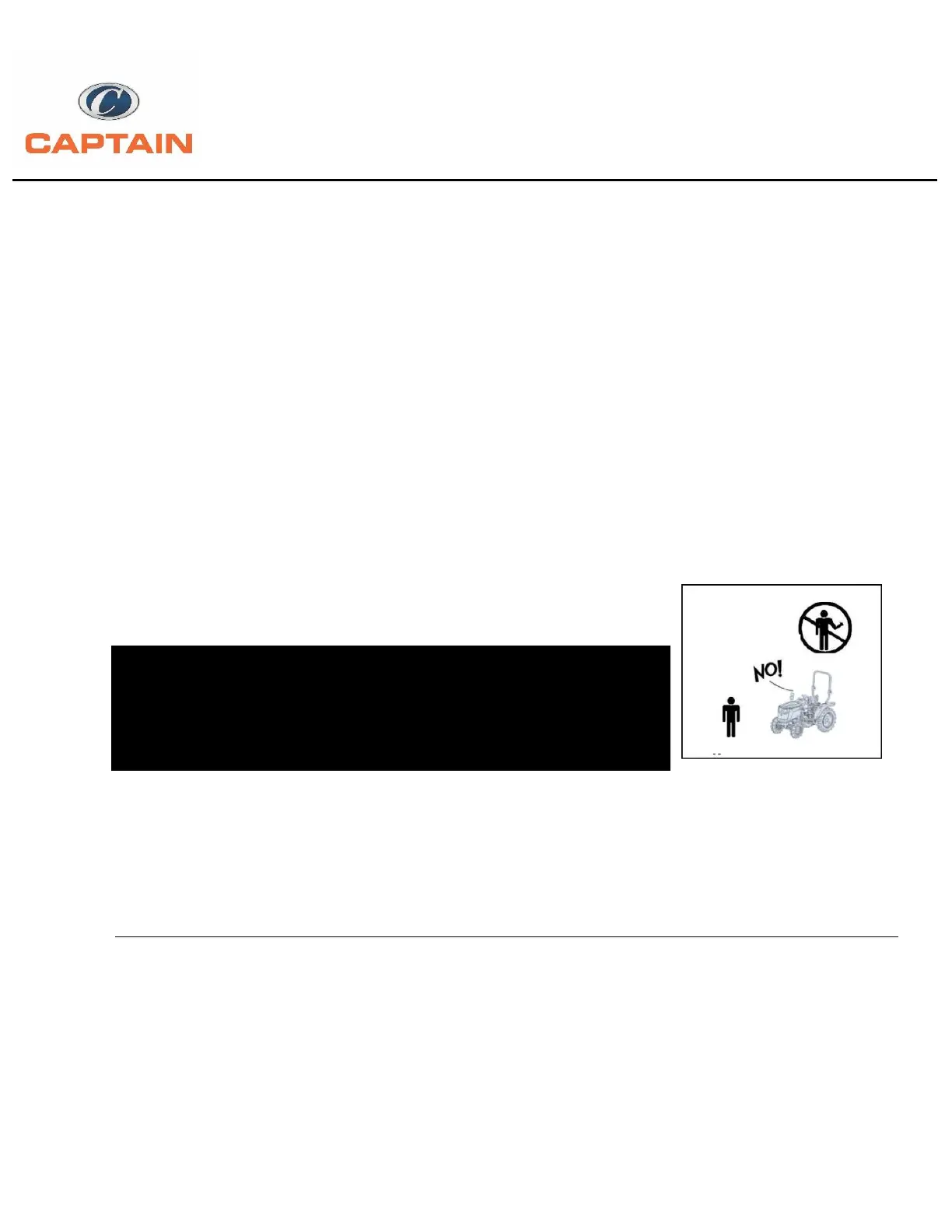 WARNING: Your tractor is a one person machine. DO NOT permit others