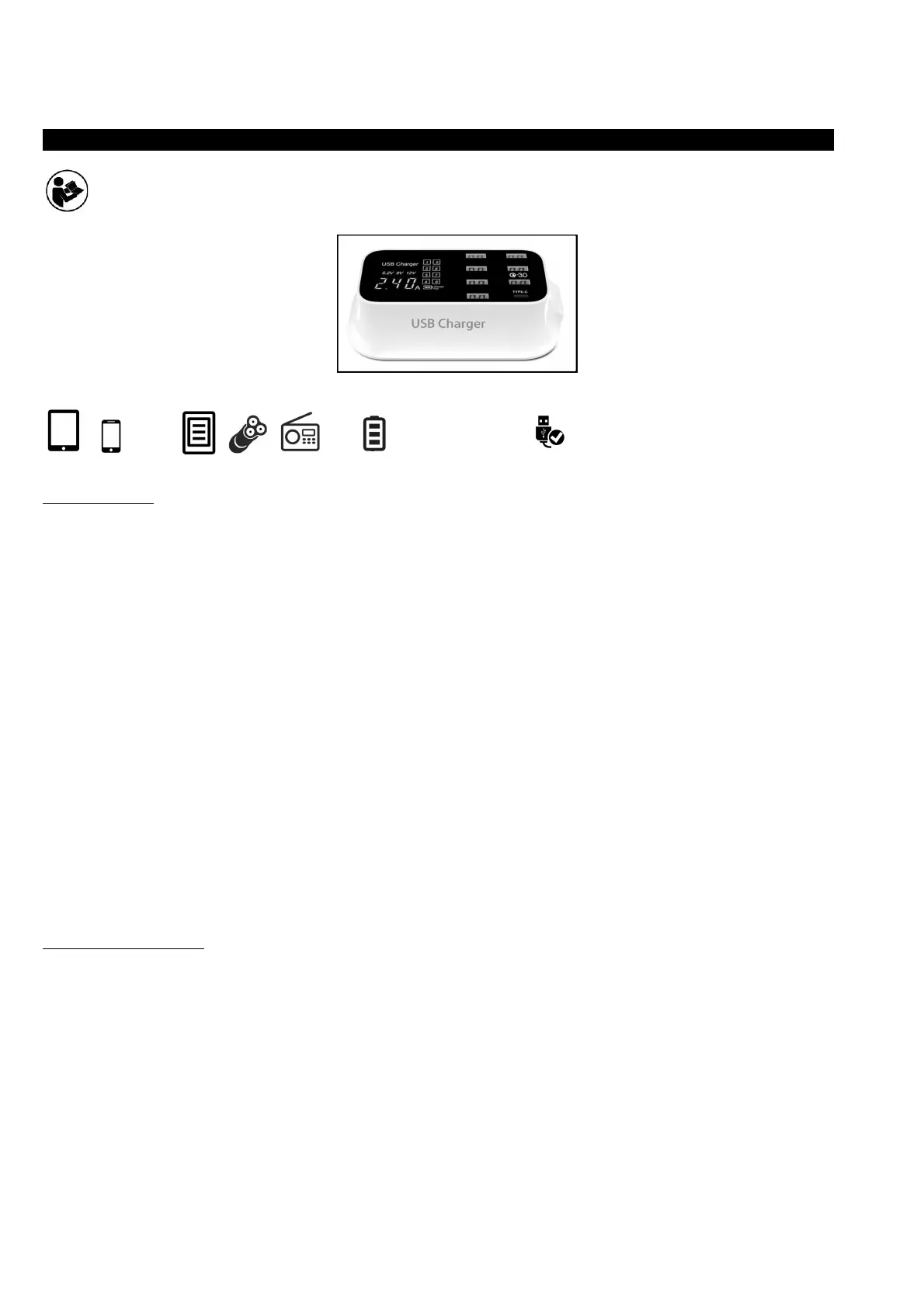 - Capacité : 6 USB output 5V 8A max 40W. QC3.0 output 5V 3A- 9V 2A - 12V 1.5A Type C 5V 3A max