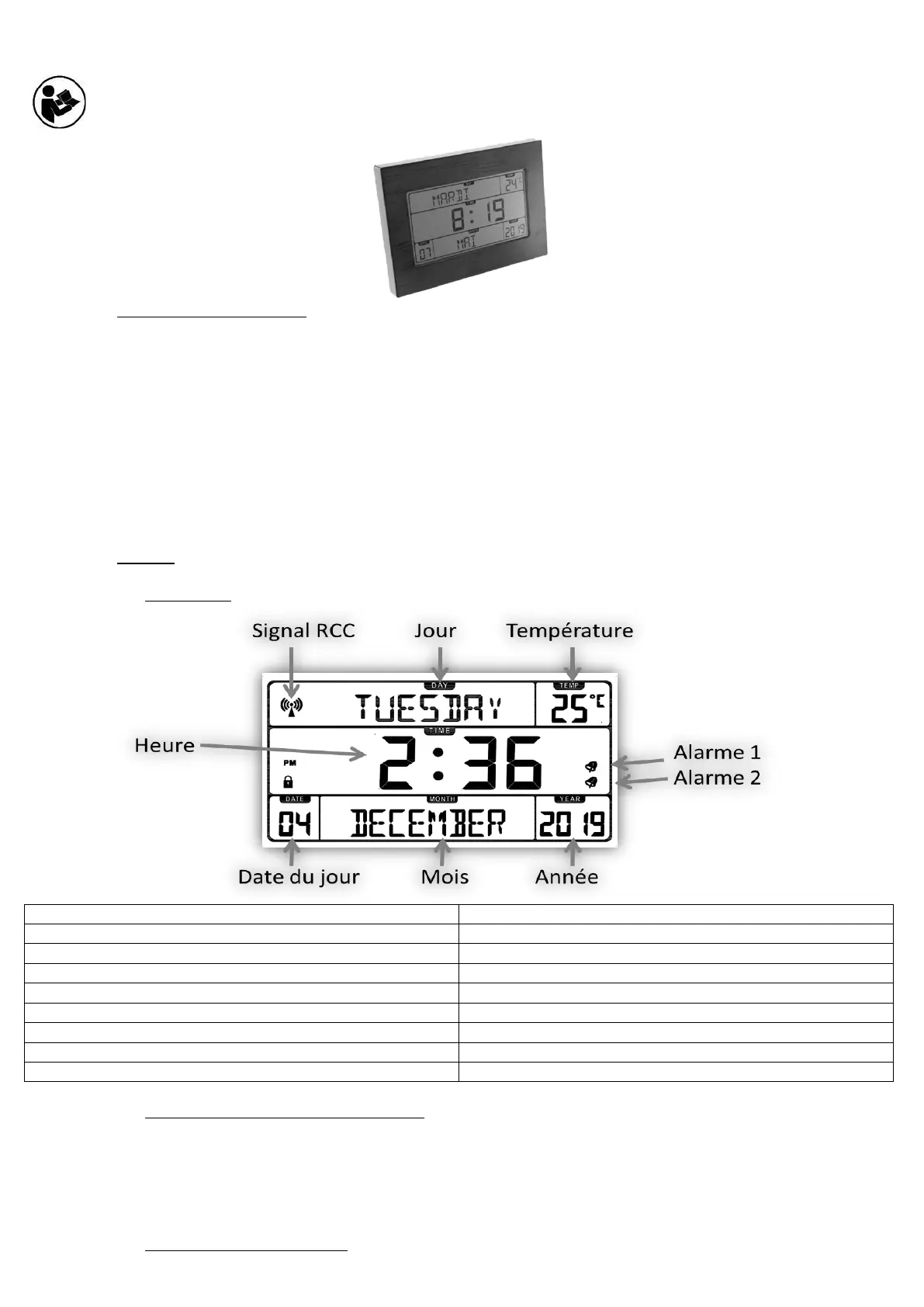- U hoort een geluidssignaal. De klok geeft de tijd en temperatuur in °C weer.