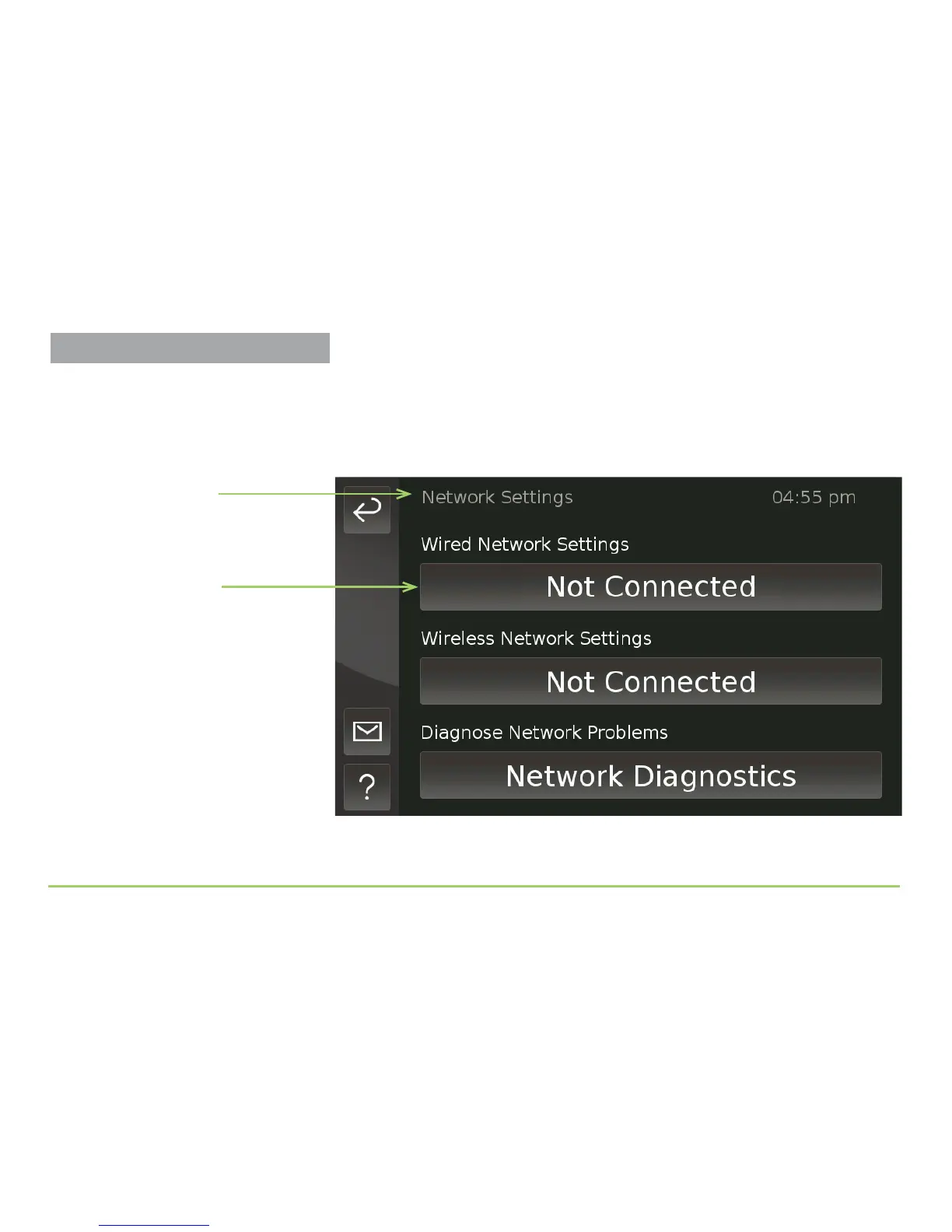 change the Wired Network settings by touching the top button.