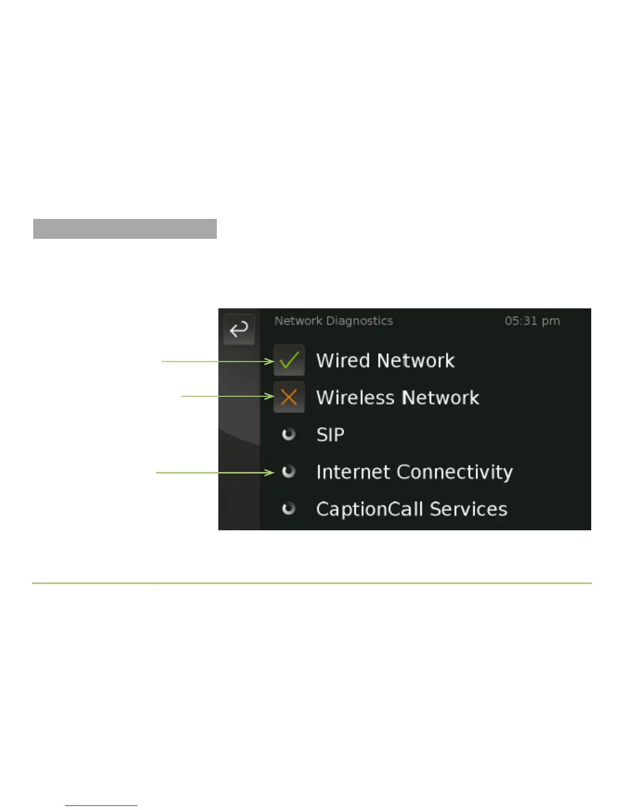 You can touch the OK or Not OK icons for the Wired and/or the Wireless