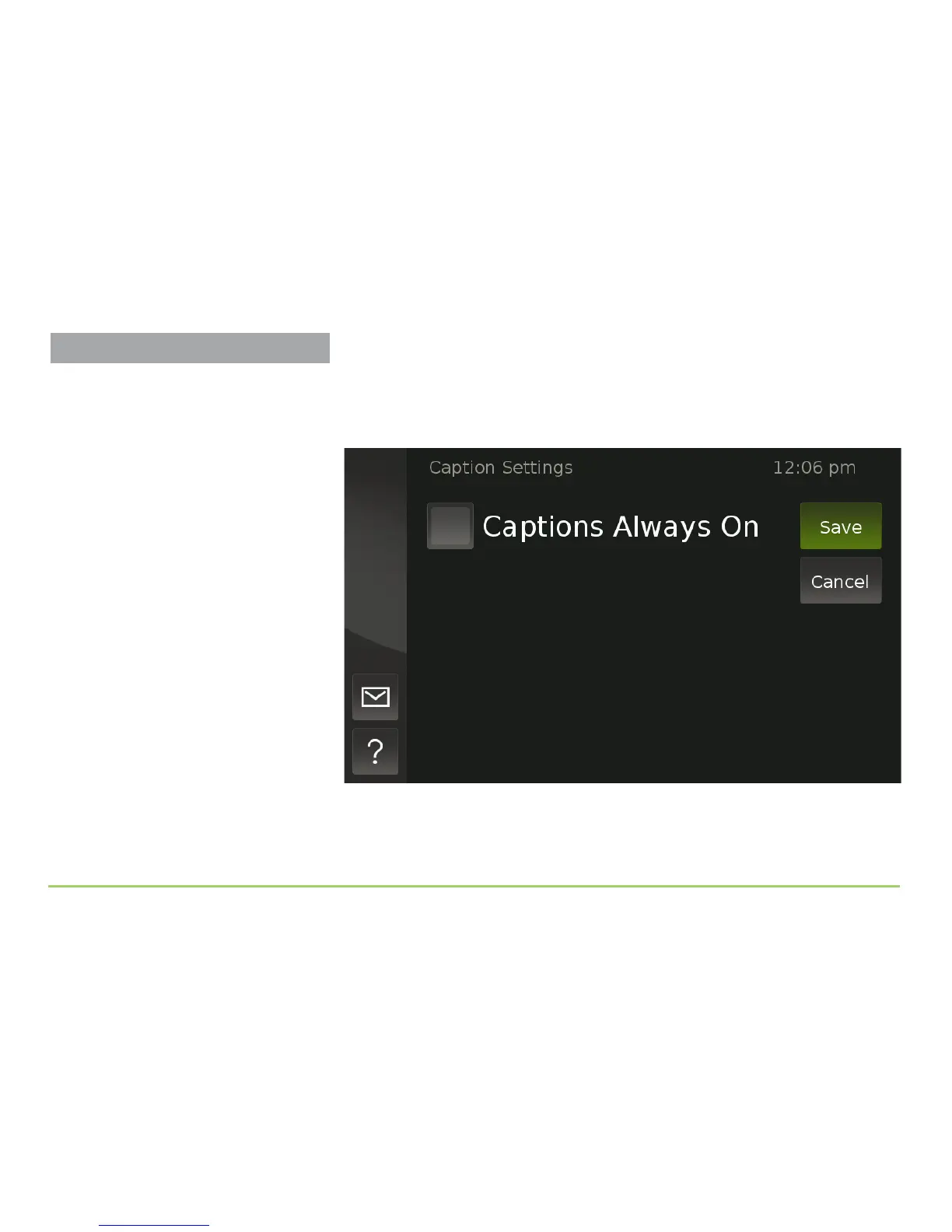 Touch the check box next to Captions Always On to enable captioning by