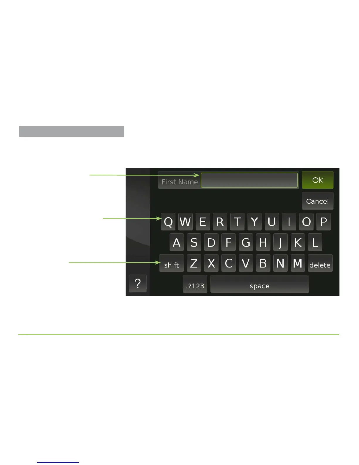 Touching the First Name eld will display an on-screen keyboard as shown