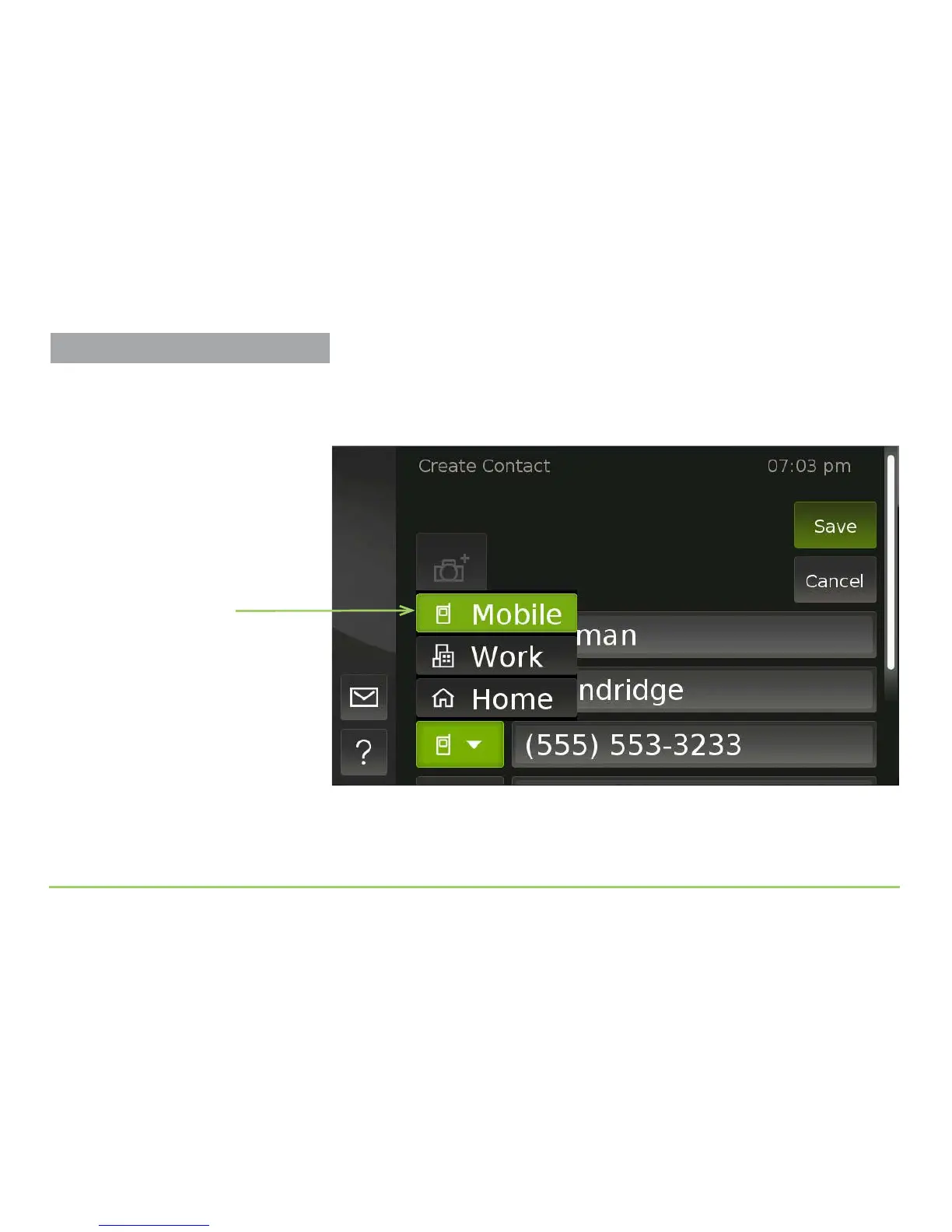 Step 15: Select the “Home” phone number type by touching its name in