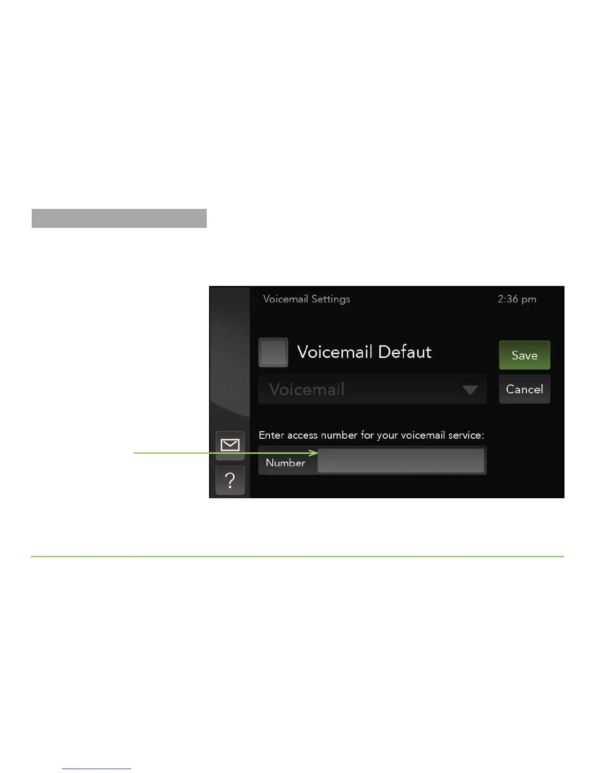 e Voicemail Settings screen will then appear as shown below. You must