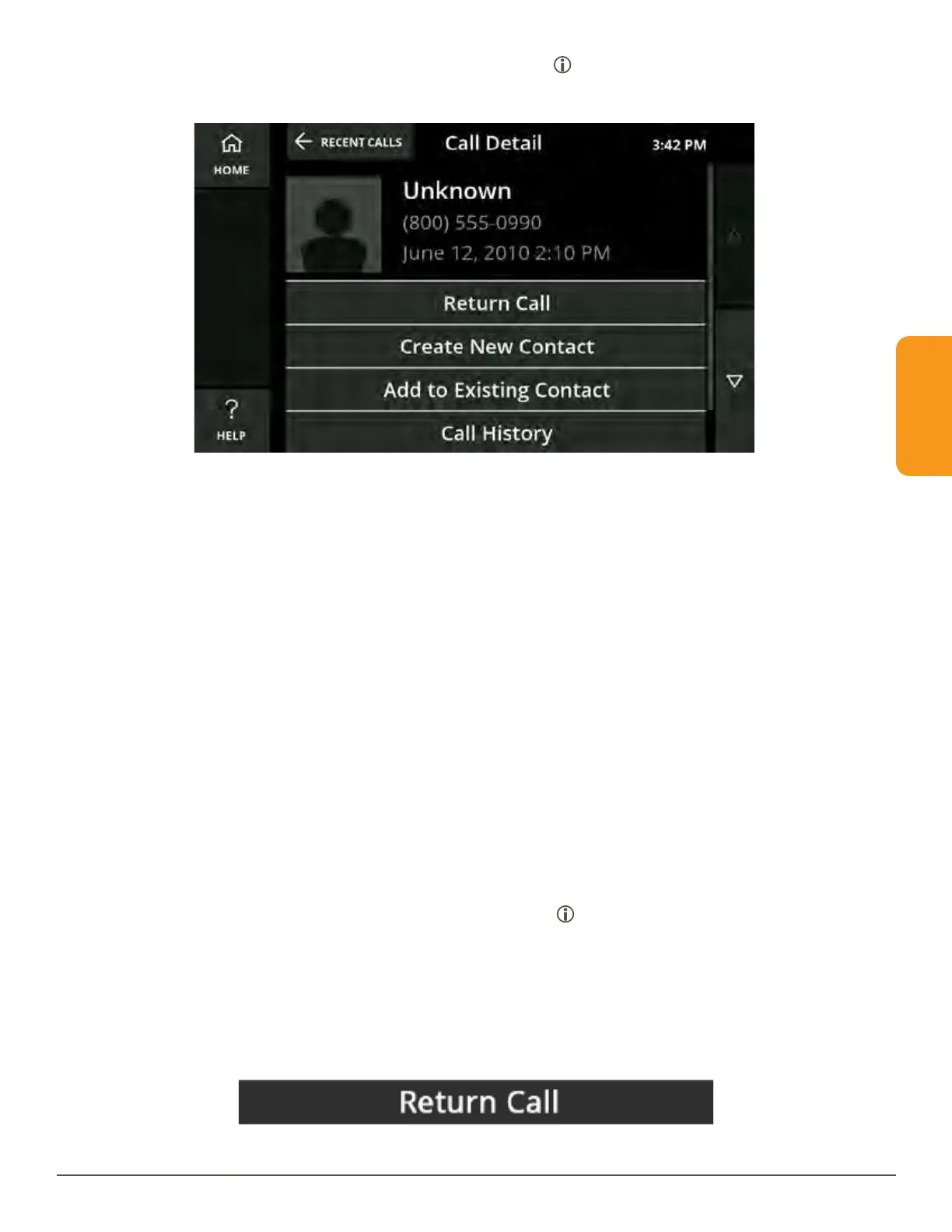 4. To review details about a recent call, touch the icon on the right of the call. The