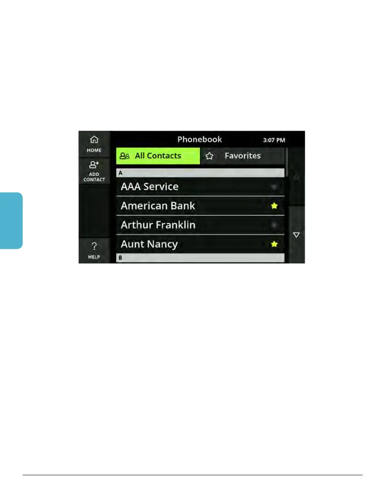 • Touch the buttons on the right to scroll up and down in the Phonebook as needed