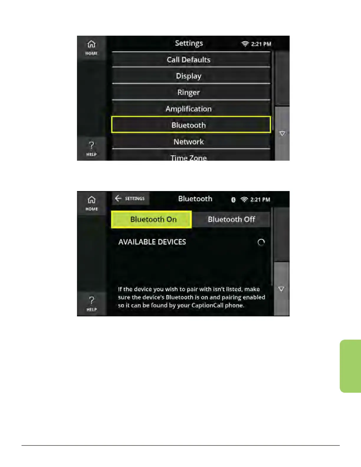 devices. Selecting the Bluetooth On button does not automatically connect the