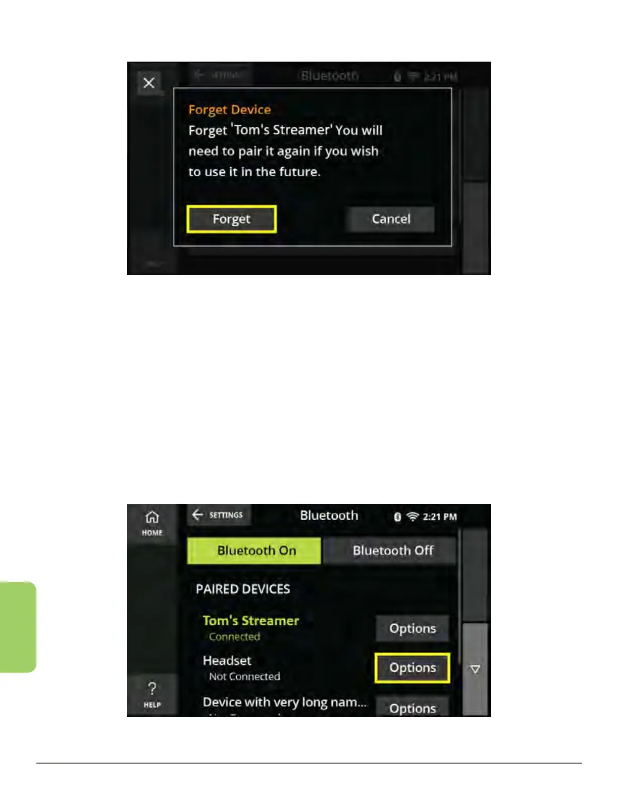 2. Touch the Bluetooth button. The Bluetooth home screen is displayed.