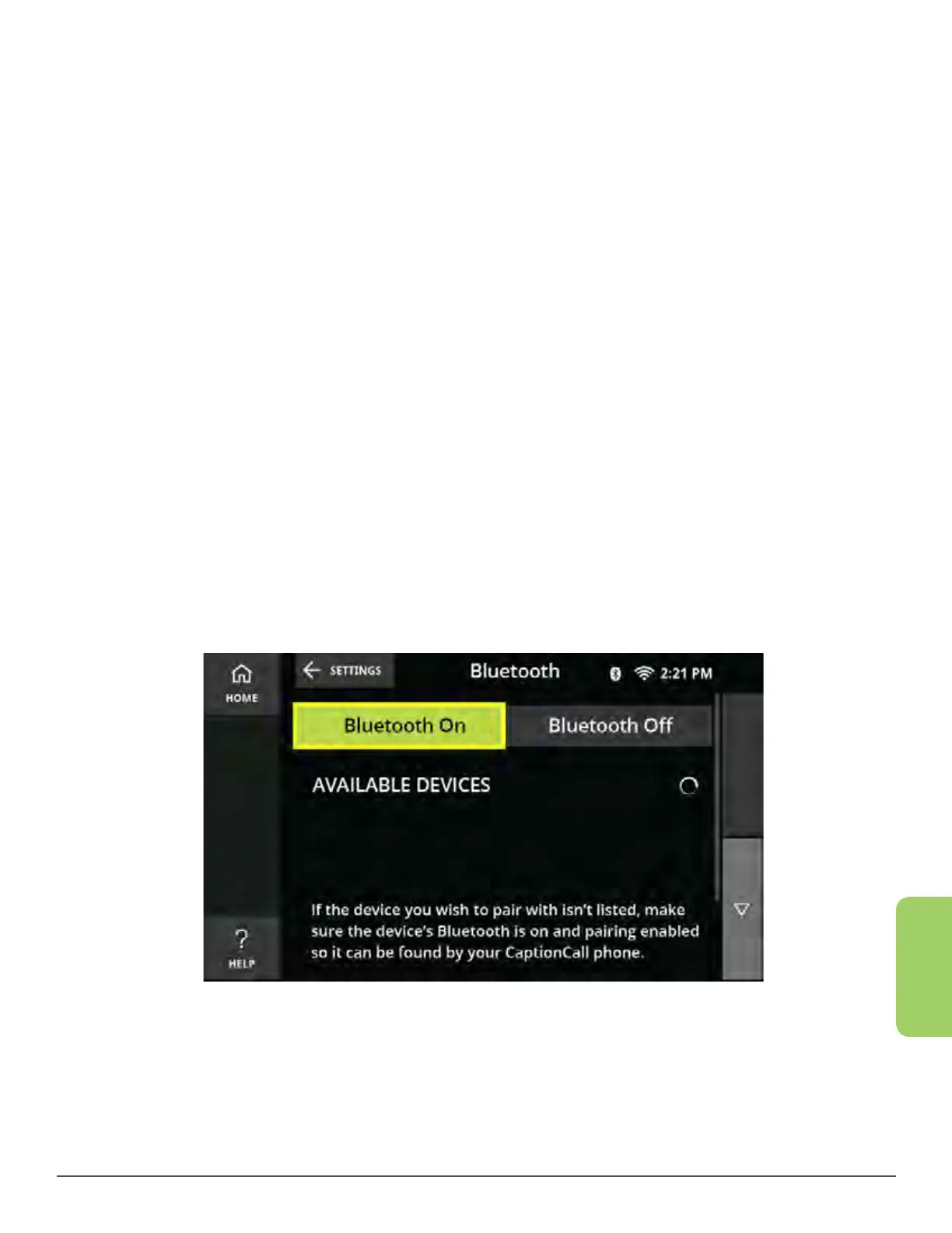 4. Make sure that the CaptionCall phone has Bluetooth turned on.