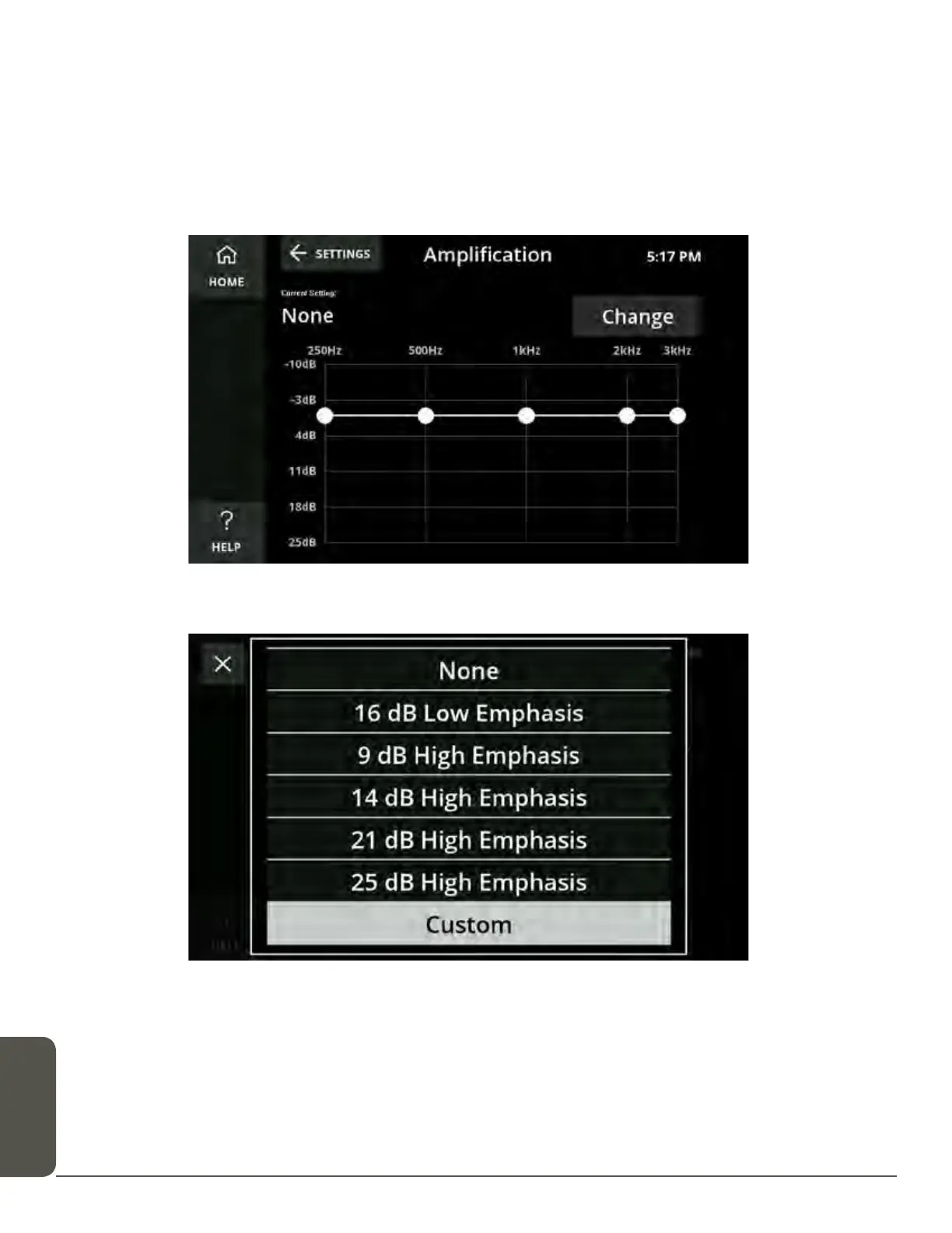 1. Touch Amplification on the Settings menu. The current amplification setting is
