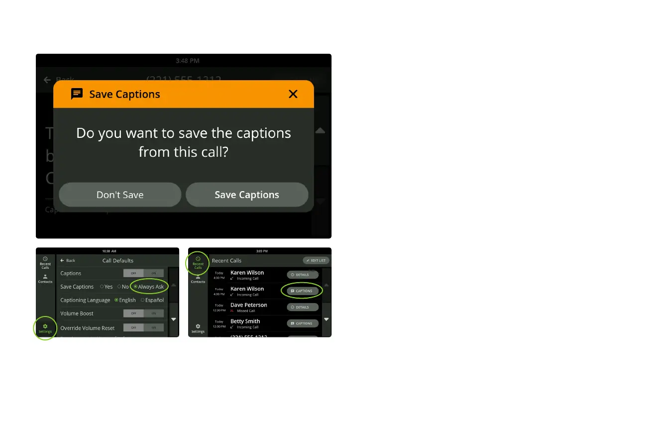 Call Defaults. Next to Save Captions, touch Yes,
