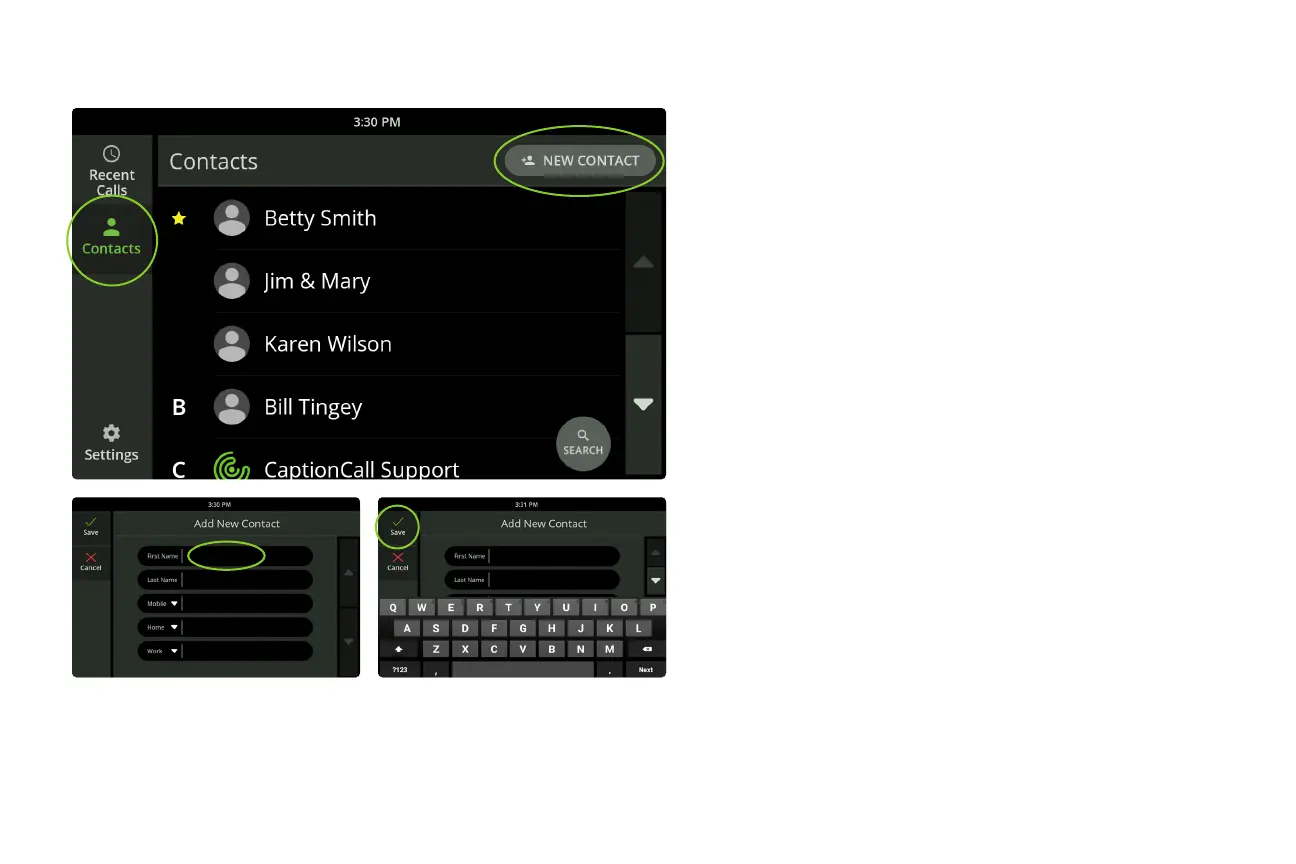 3. Touch each eld to enter your contact’s name and