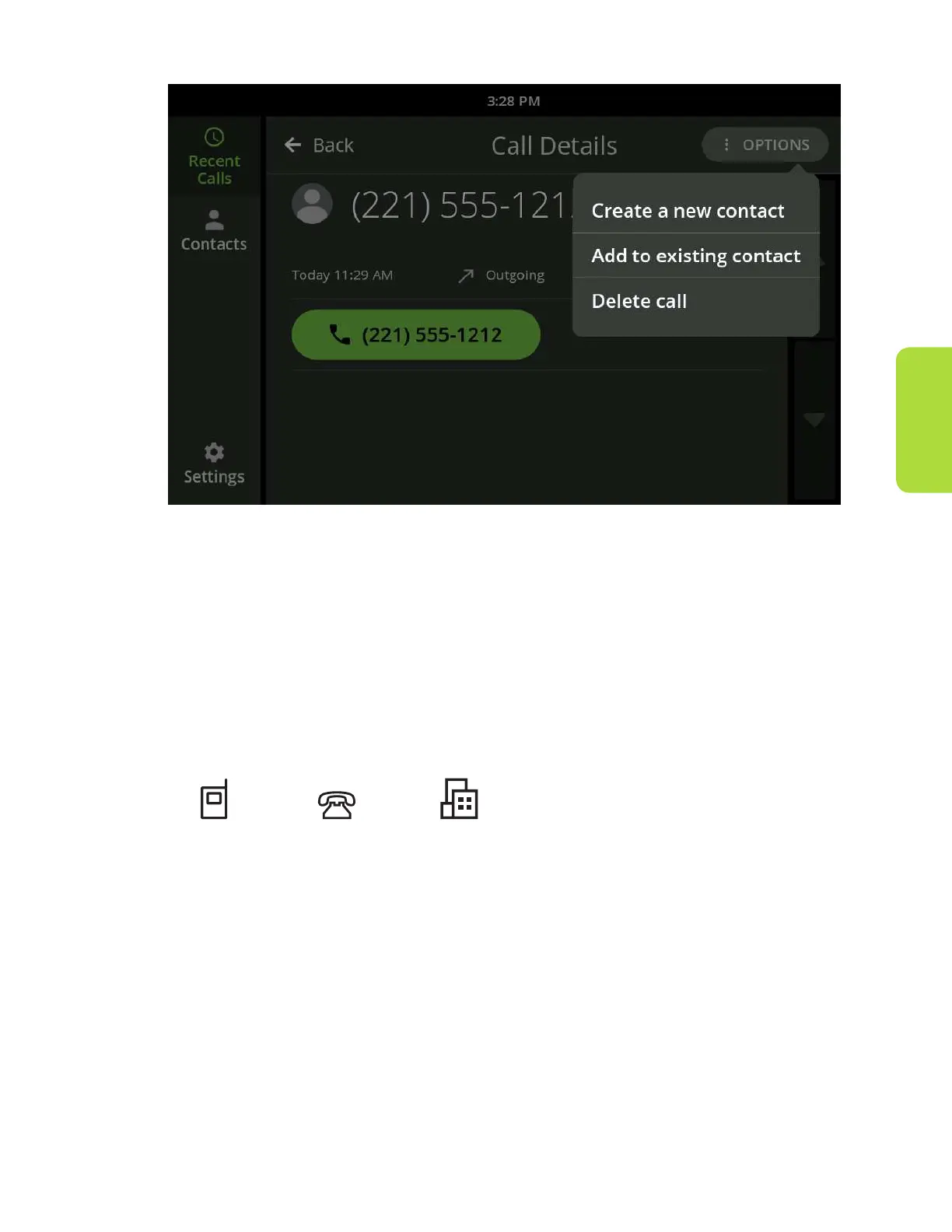 call from the Recent Call list. You will be prompted to conrm you want to delete
