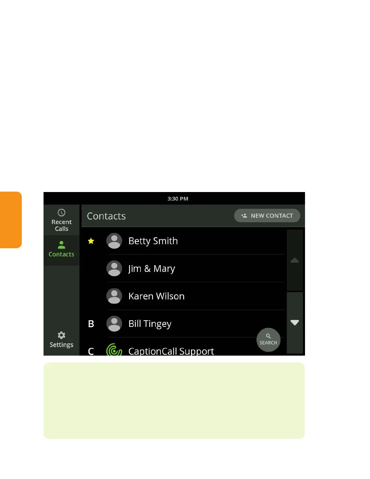 Use your nger to scroll up and down the list as needed to locate a contact.