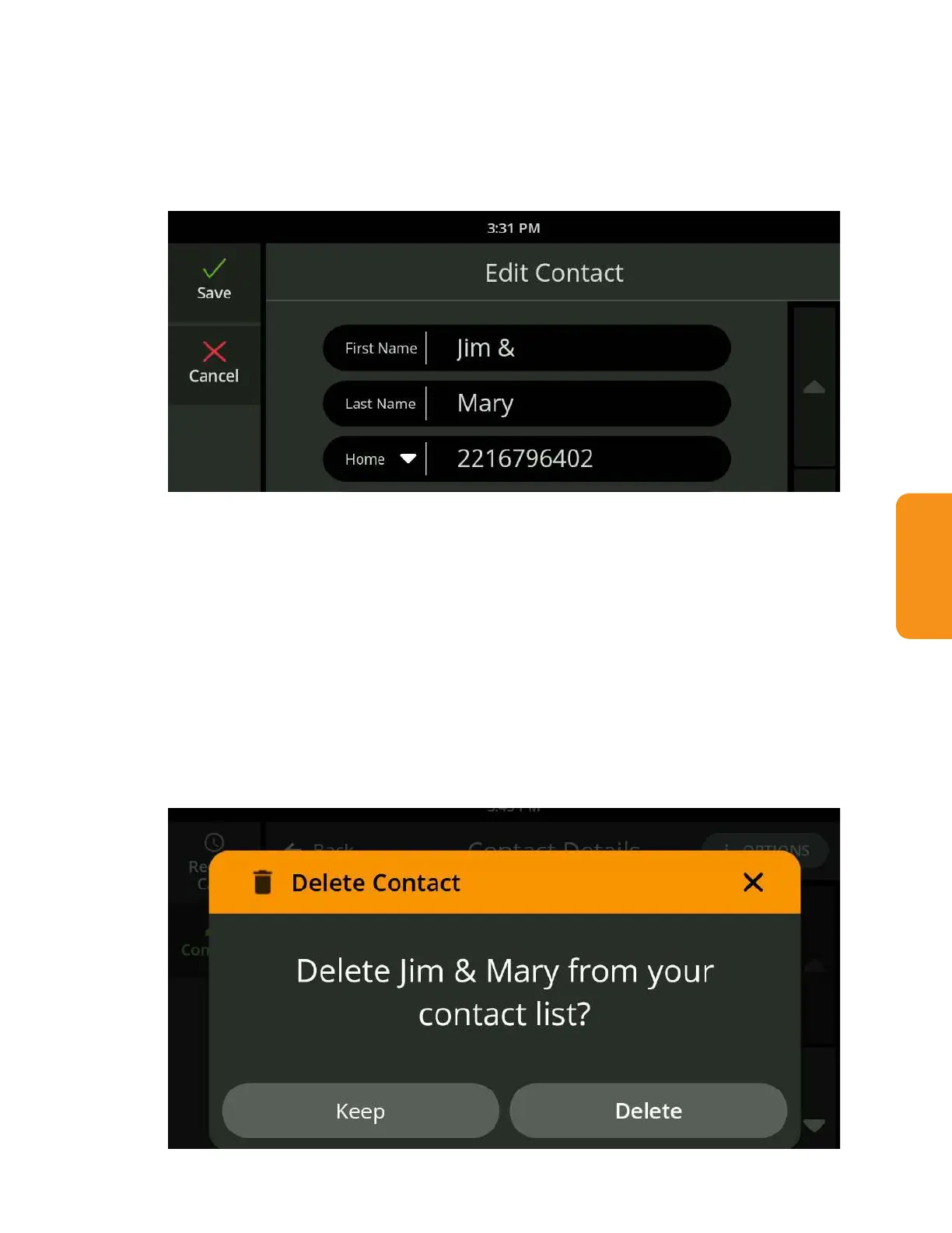 4. Touch Delete to remove the contact from the CaptionCall phone.
