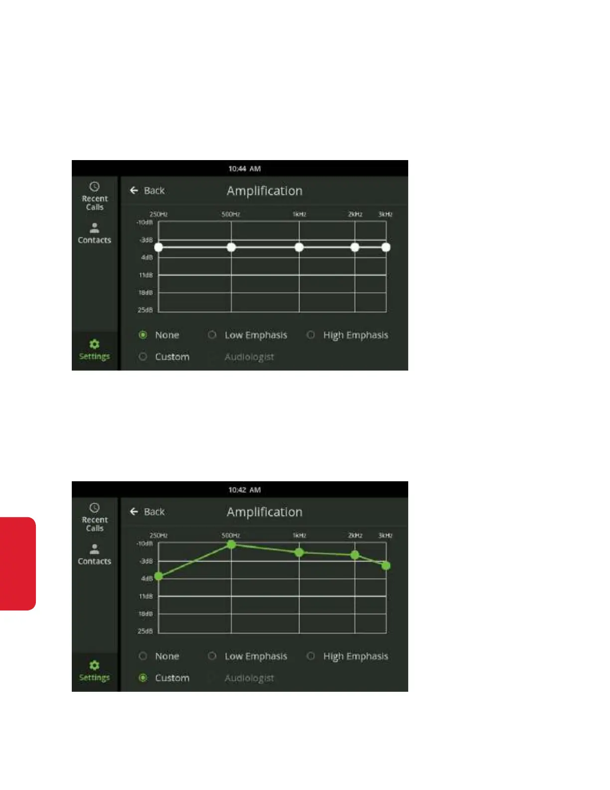 1. Touch Amplication on the Settings menu. The current amplication setting