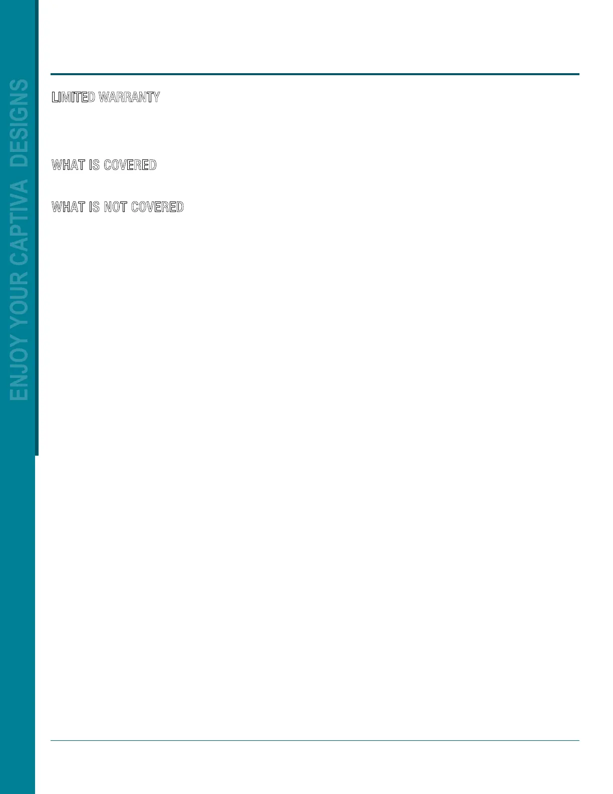 This warranty does not cover commercial use, hardware, acts of nature, re, freezing and abusive.