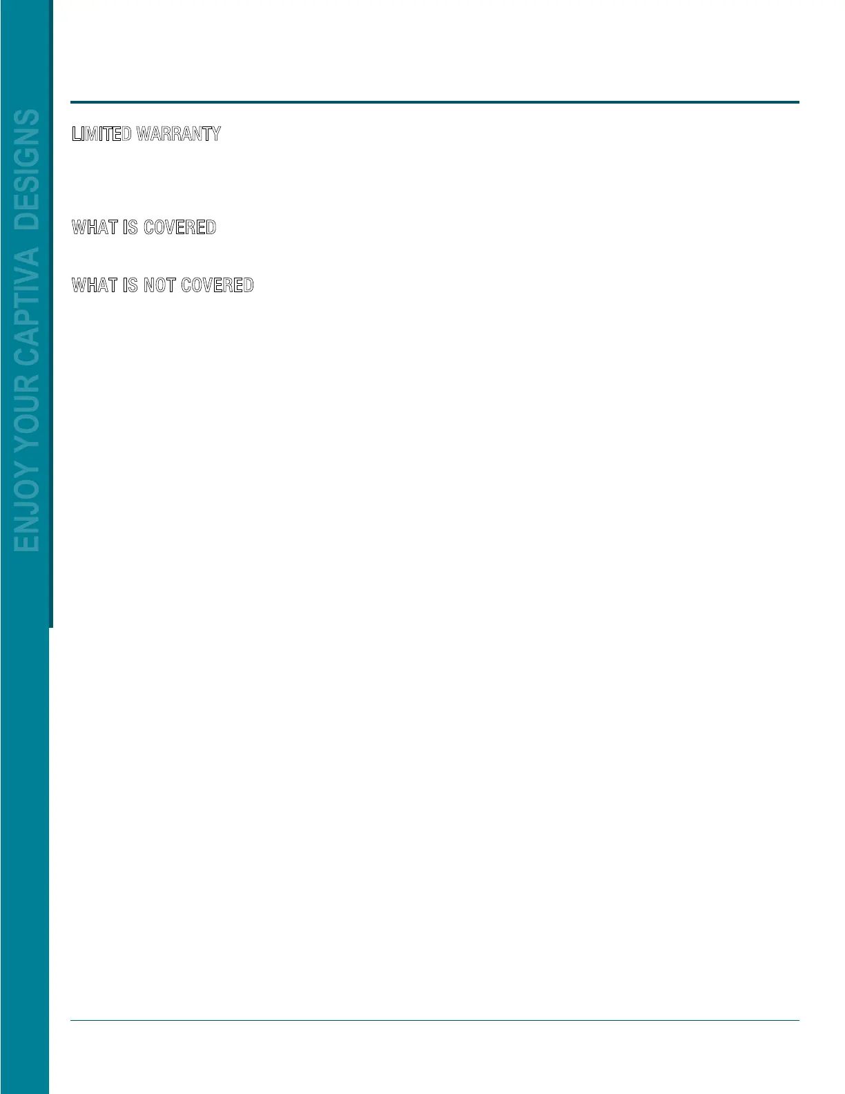 This warranty does not cover commercial use, hardware, acts of nature, re, freezing and abusive.