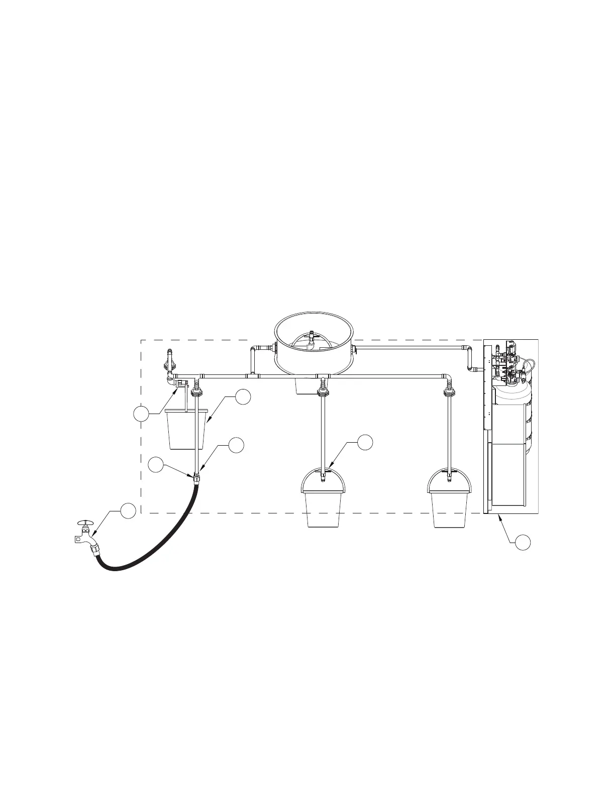 • Hang the bucket support brackets and buckets on the applicable drops. If possible, connect a hose to