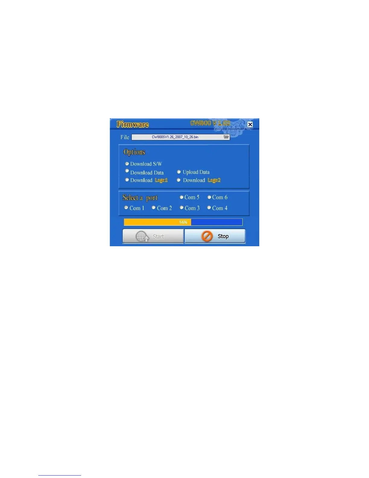 7) Now its time to start loading the software, Press Start button on the loader and the upgrade