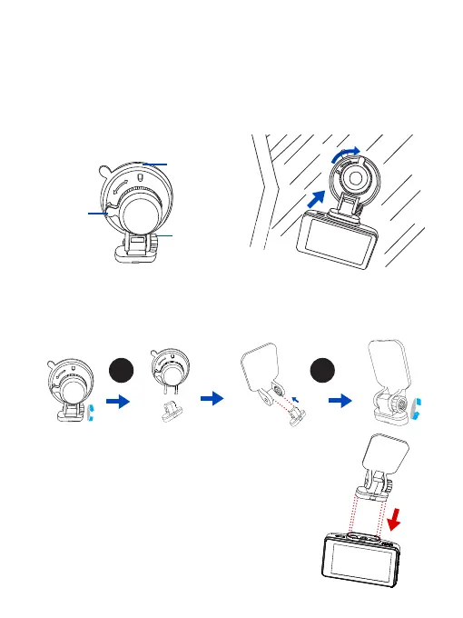 3. Presione la ventosa de los soportes en el parabrisas y gire la cerradura en el sentido