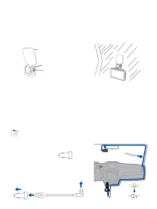 remains level with the vehicle and the road. Turn the Dash Cam on to check the camera