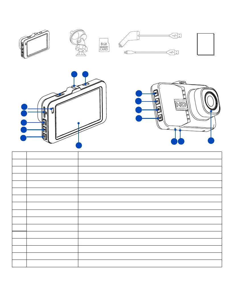 11 Lock button Press and hold to save the current recording video as undeletable file.