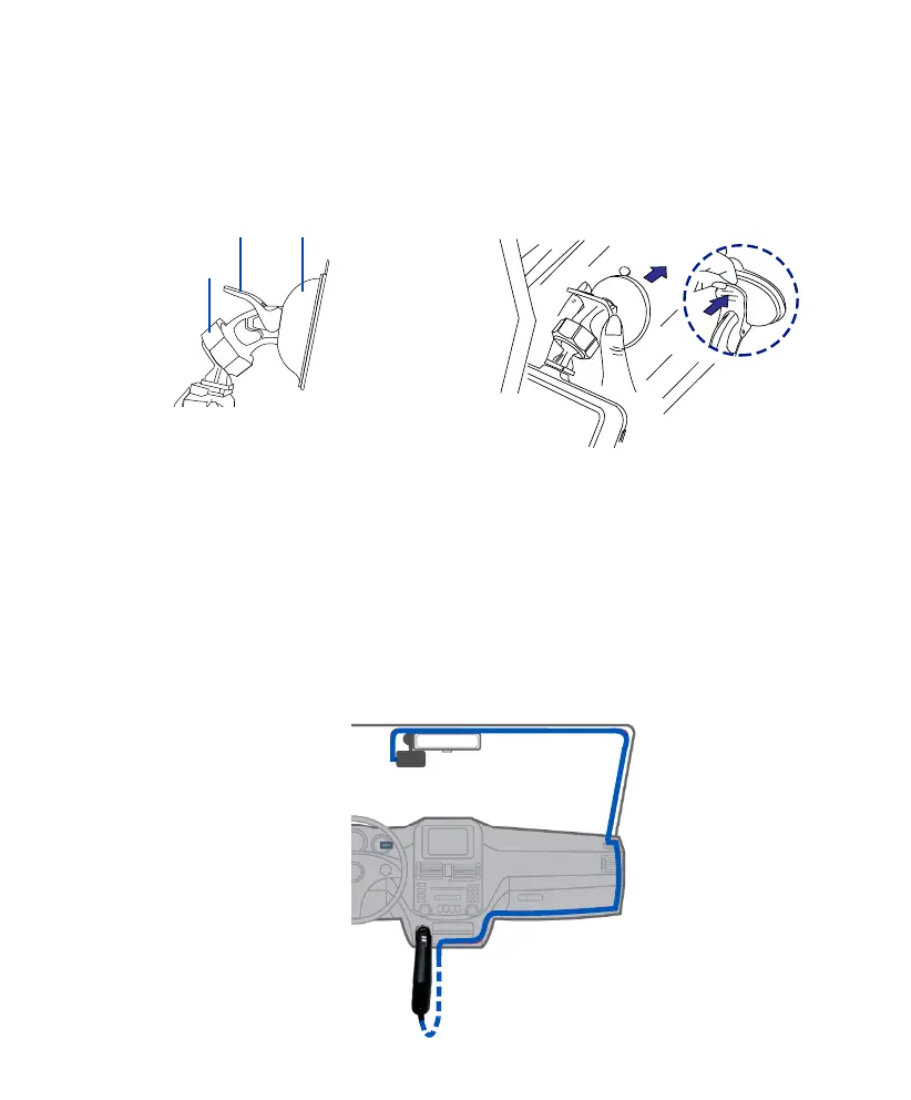 Note: You may tuck the cable between the paneling of your windshield and/or A-pillar space if