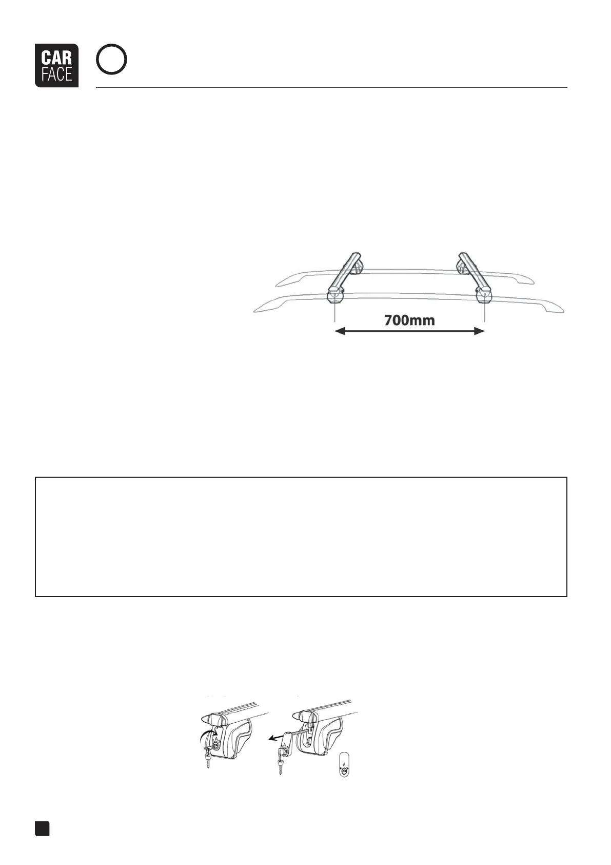 • Not suitable for vehicles where the roof rails are fl ush with the vehicles roof surface.