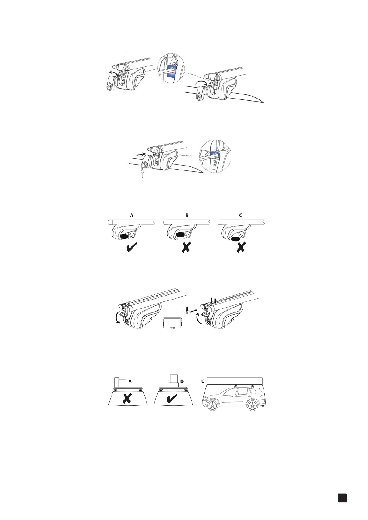 6. The load must be evenly distributed over the area of the carrier system (B), and the centre of gravity of the load kept as low as possible. Narrow