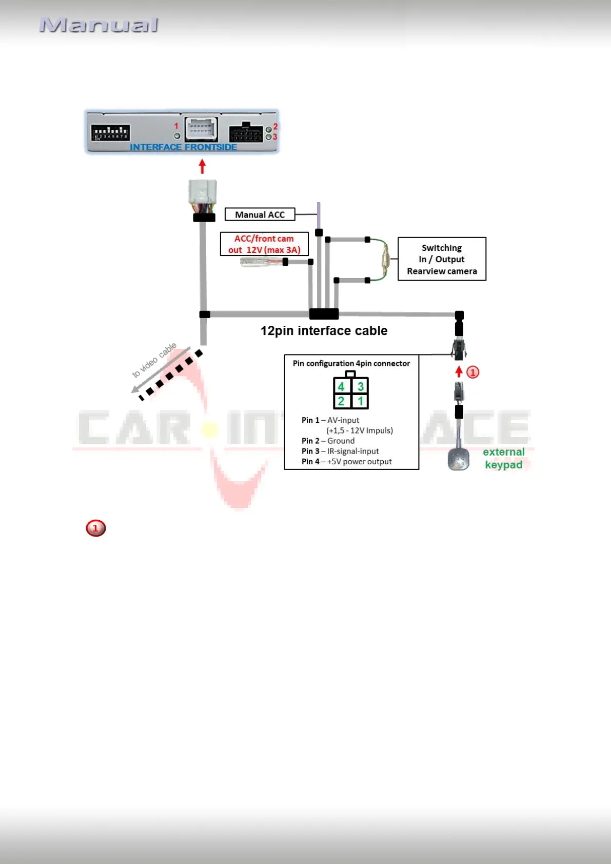 Connect the keypad’s female 4pin connector to the 12pin interface cable’s male 4pin