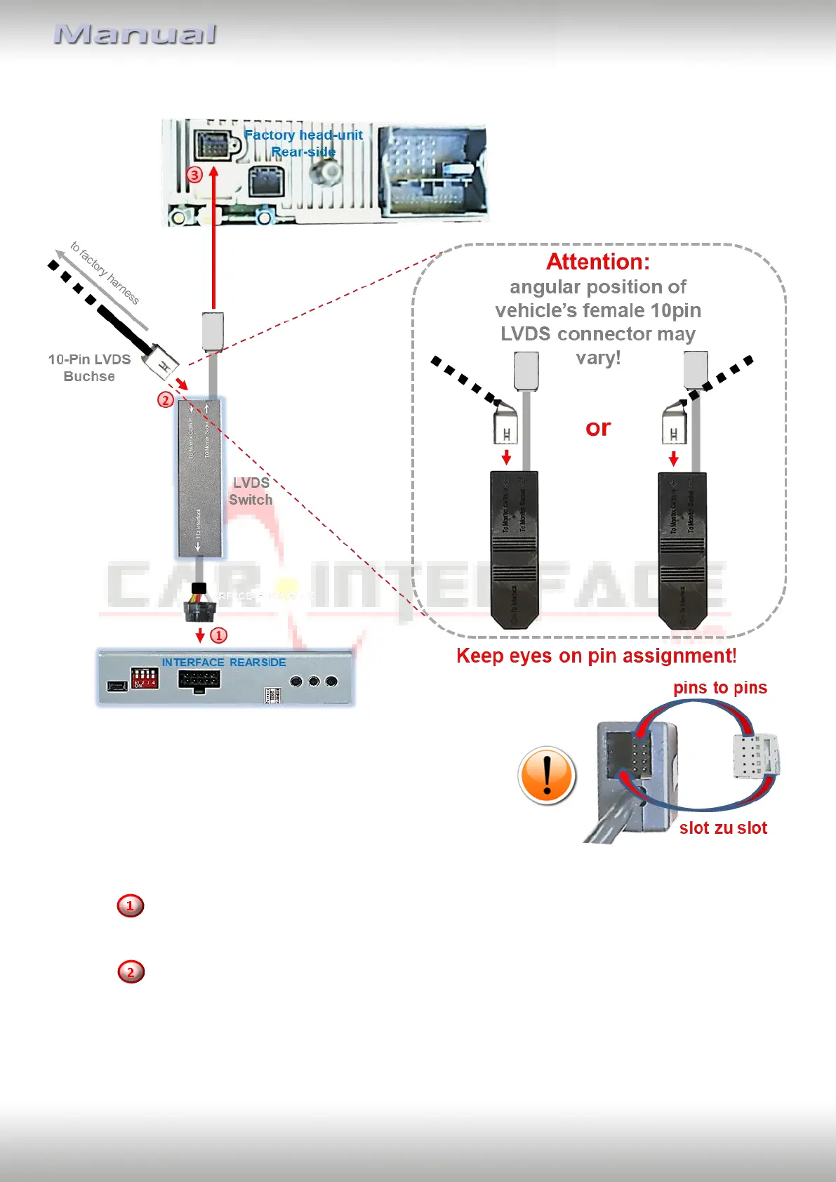 head unit and connect it to the male 10pin connector “Monitor Cable In” of the LVDS