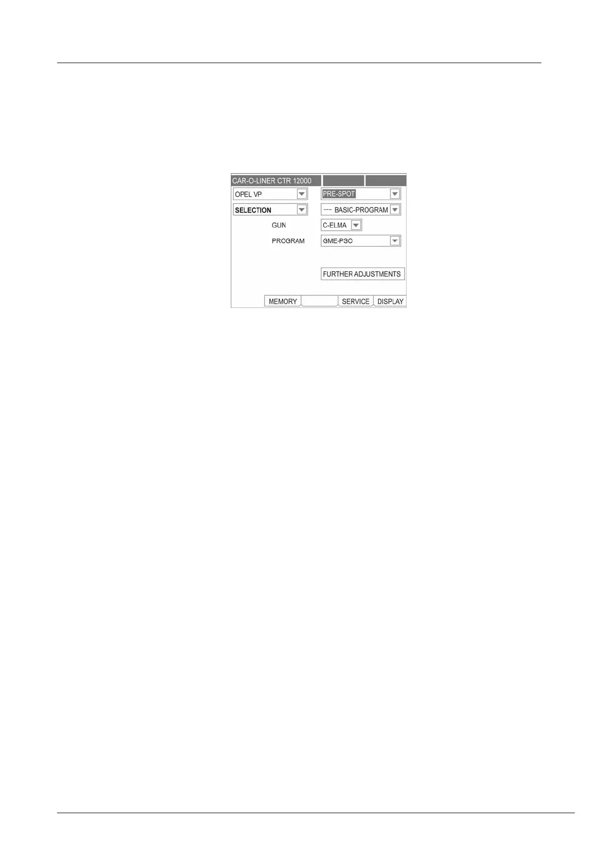 Having selected OPEL VP (PSO Pre Spot Operation) the screen below ap-
