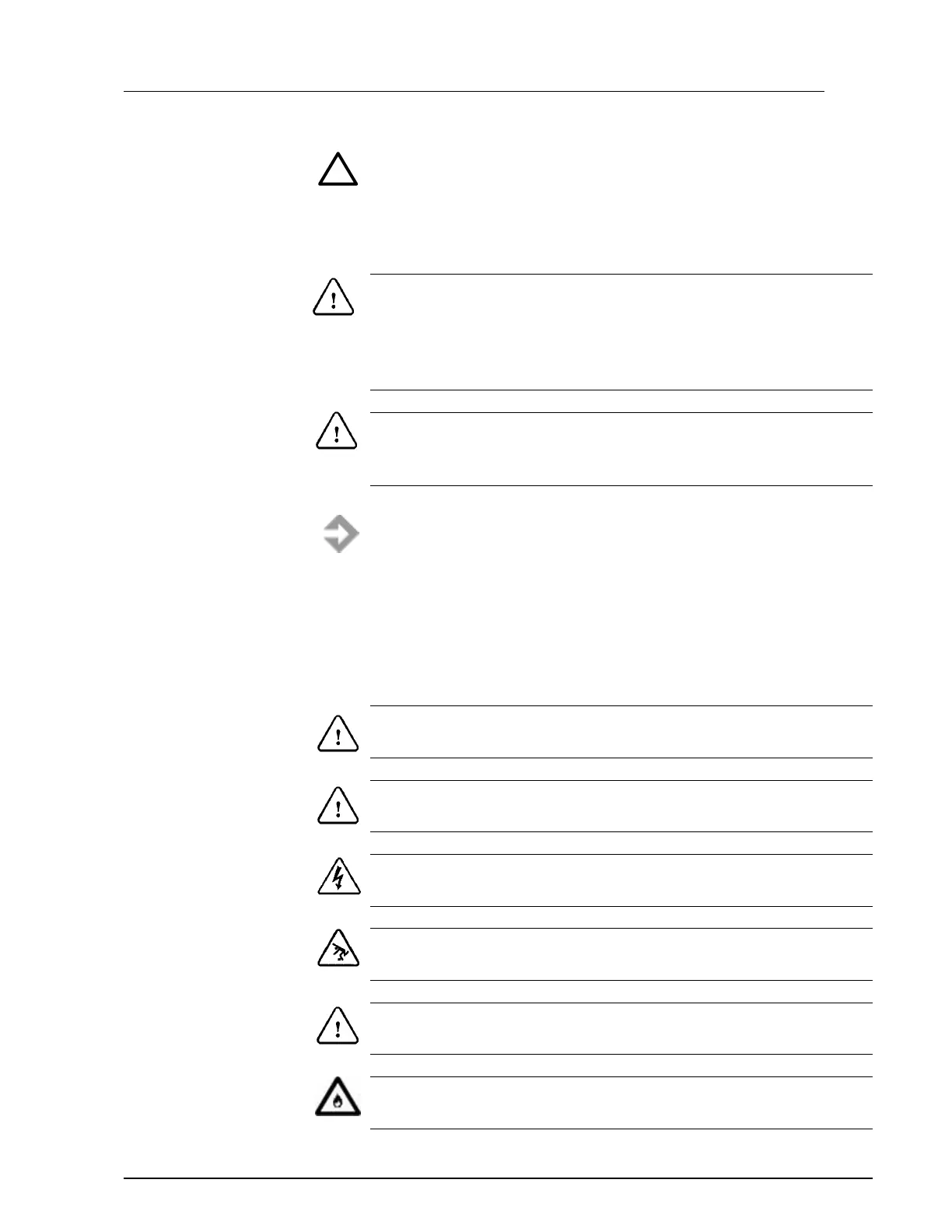Warns of risks for personal injuries and or damages to equipment.