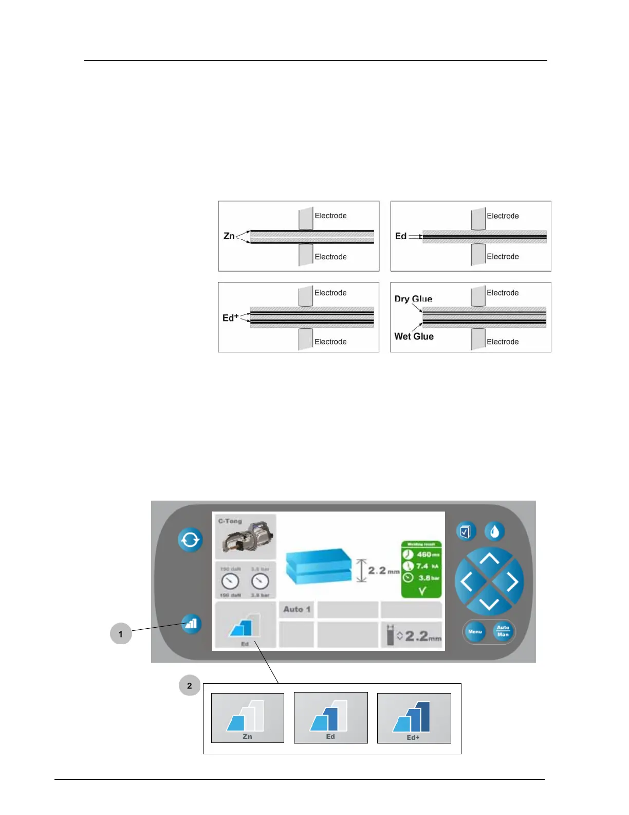 Toggle between Zn, Ed, Ed+ coating and Drye Glue.