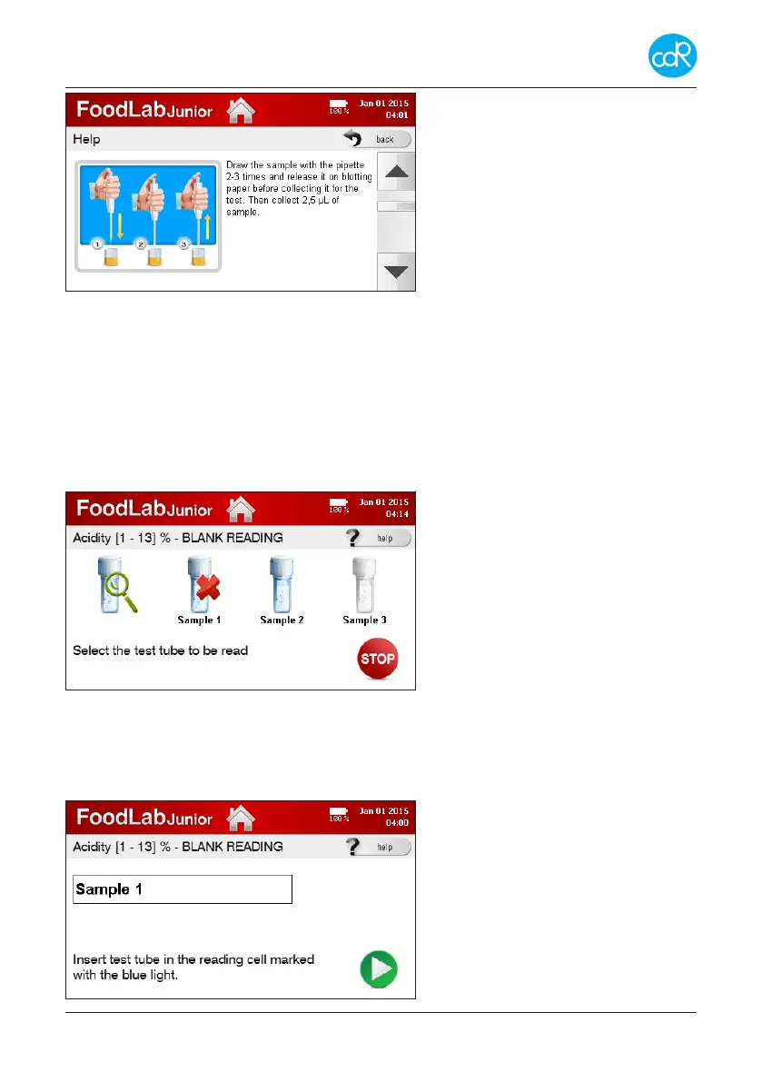 • Touch Sample 1 that should be read and put test cuvette with sample 1 into the