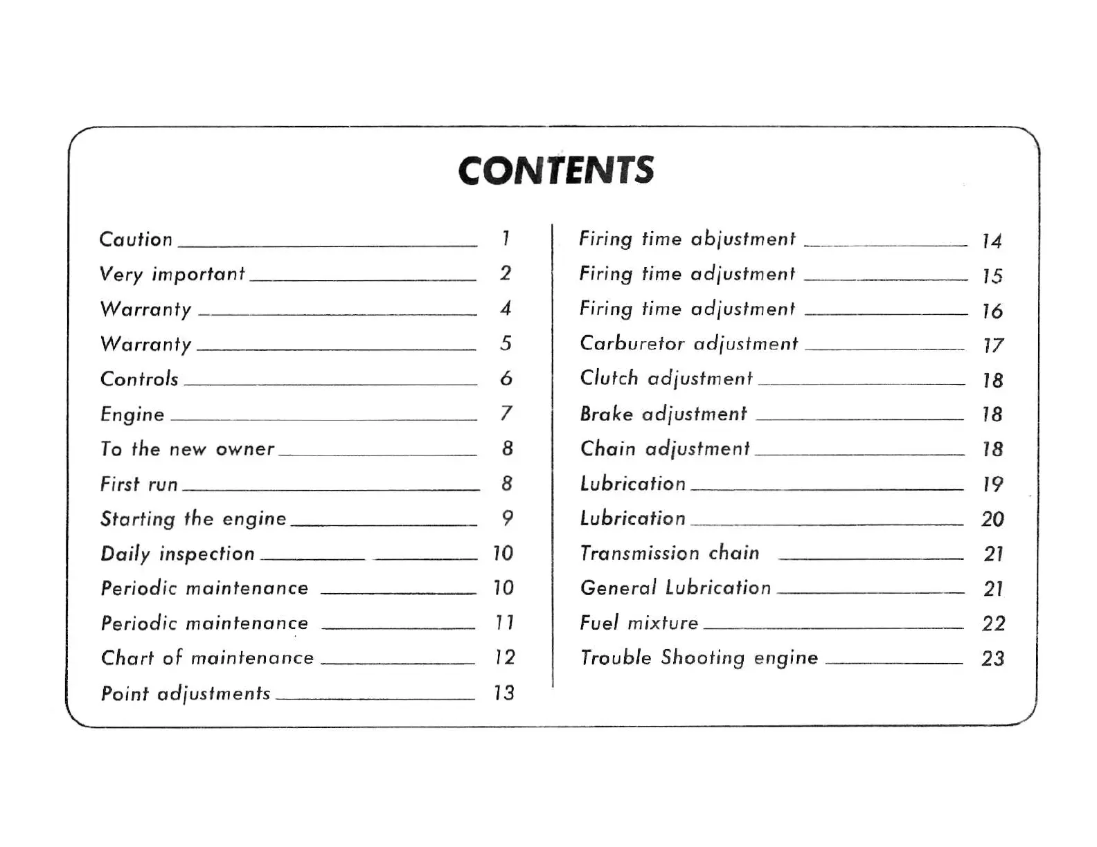 Carabela motomatic - Table of Contents