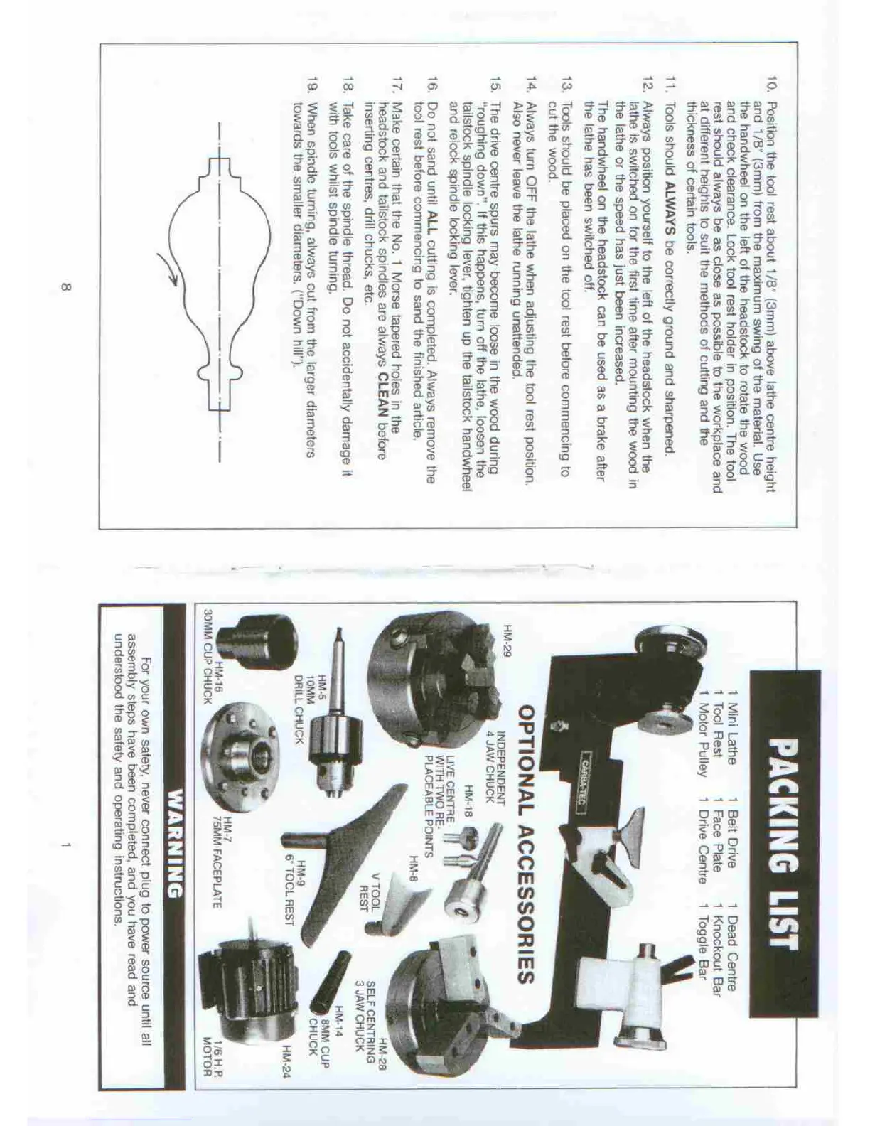 Carba-Tec HM-1A - Packing List; Optional Accessories; Safety Warning; Electrical and Instruction Safety
