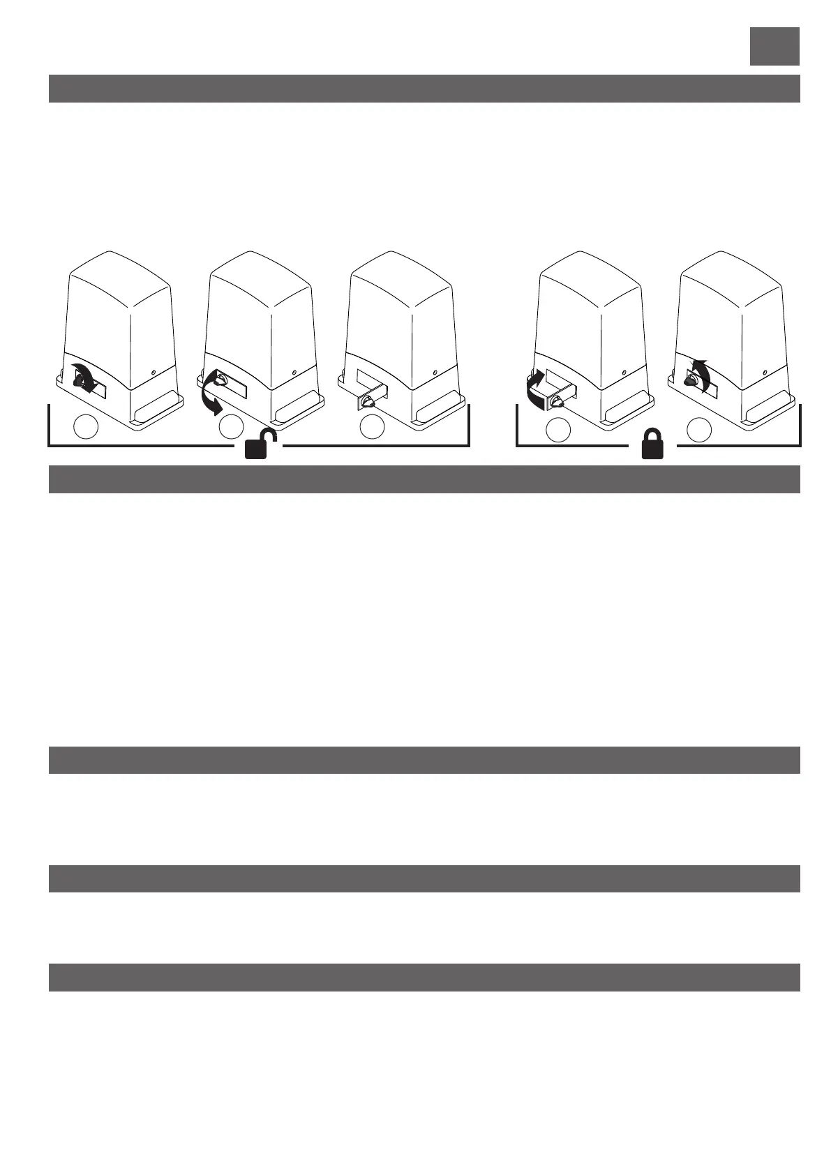 BLOCAGE : 4) refermer le levier 5) tourner la clé de sécurité dans le sens inverse des aiguilles d'une montre, le motoréducteur est