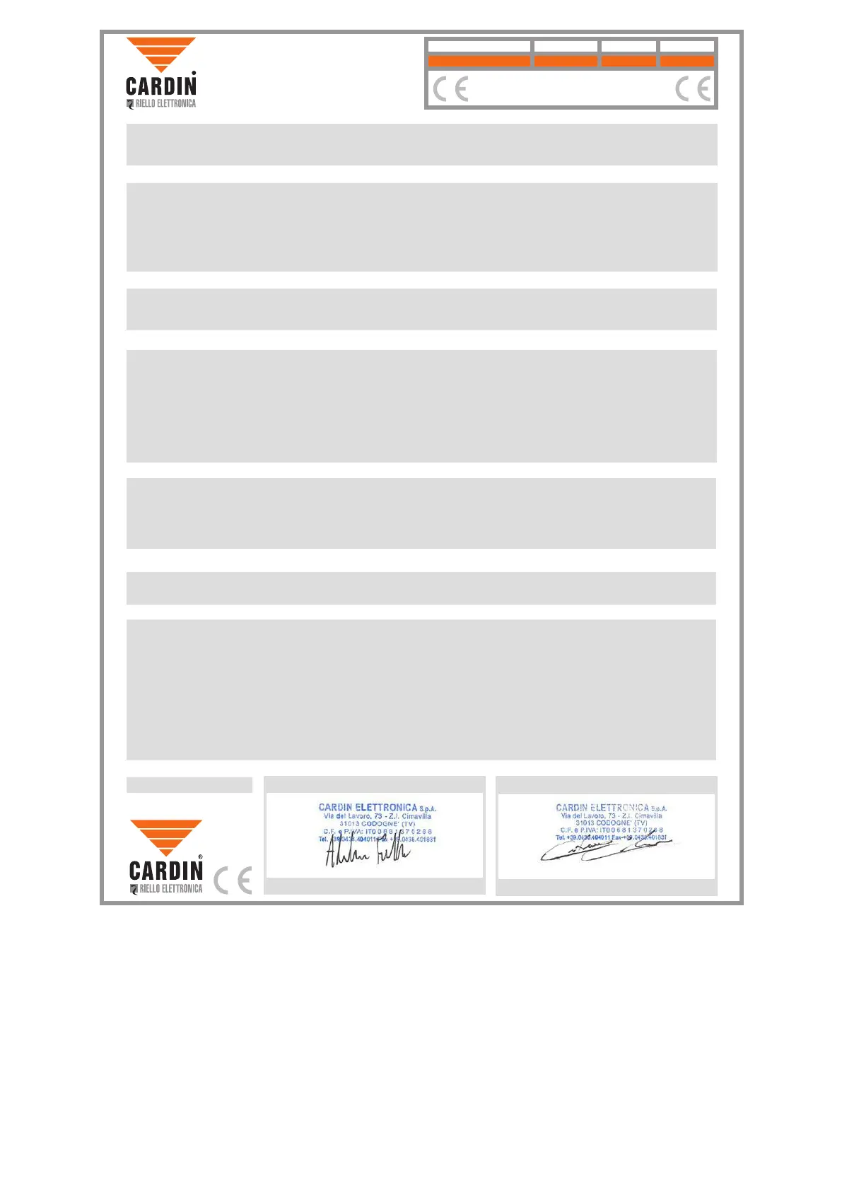 Il costruttore: CARDIN ELETTRONICA S.p.A.